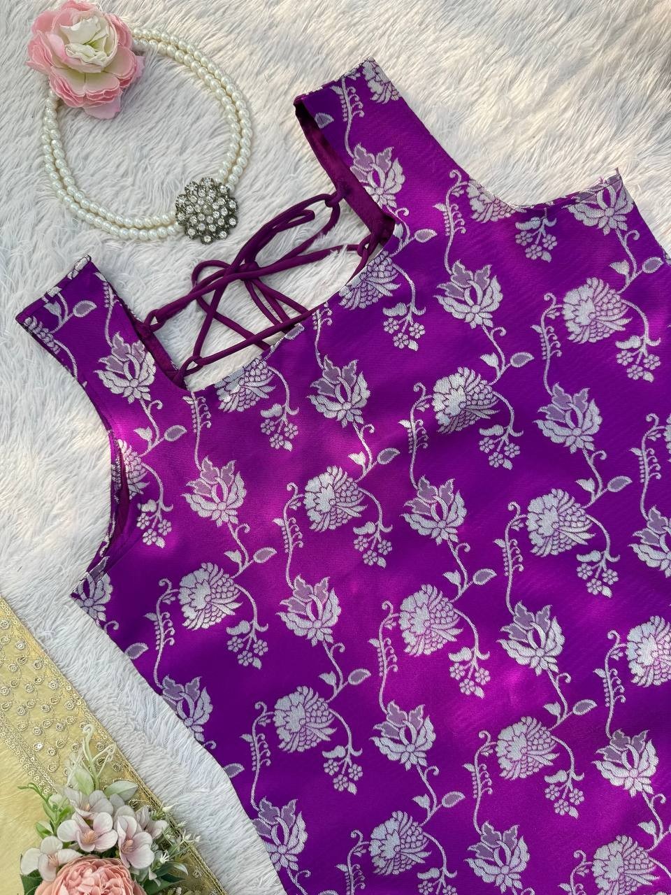 как выглядит Beautiful Look Jacquard Purple Top Palazzo With Dupatta For Wedding Wear фото