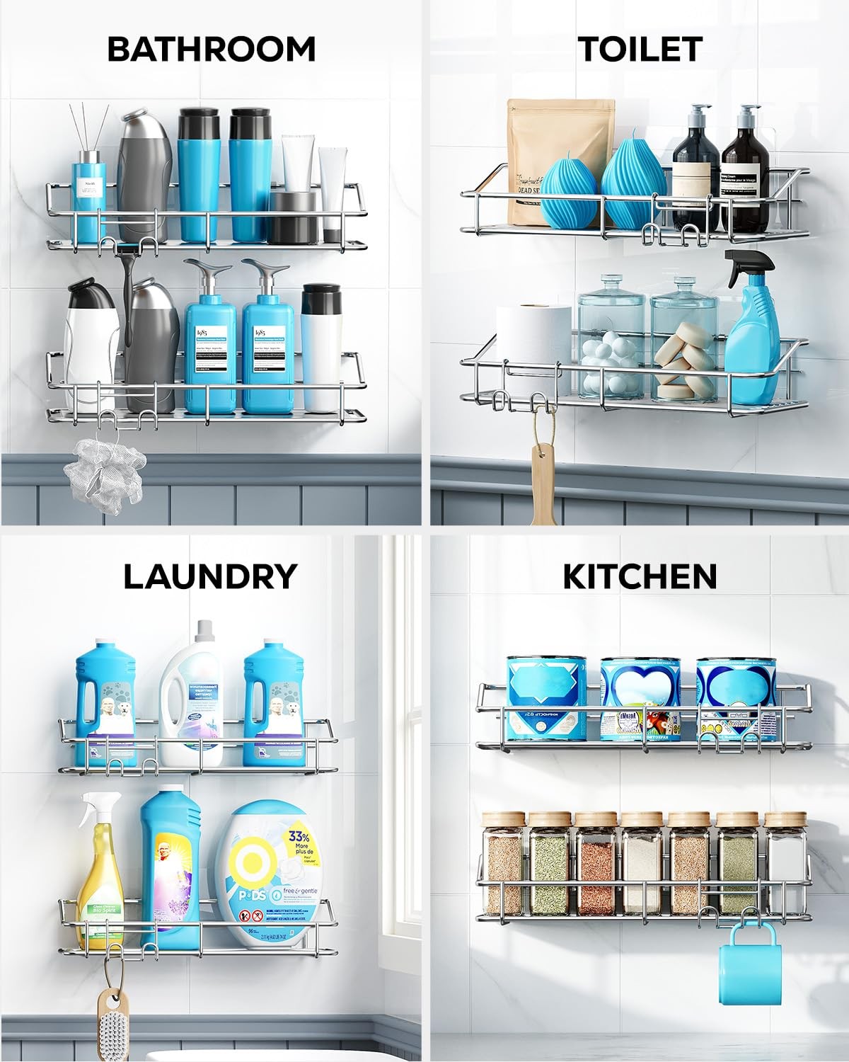 Shower Caddy Shelf Storage Rack Adhesive Without Drilling Stainless Steel wit...