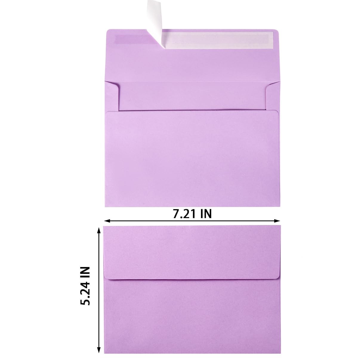 50 Pack 5 x 7 Envelopes Colored Self Seal for Wedding, One Size, Light Purple
