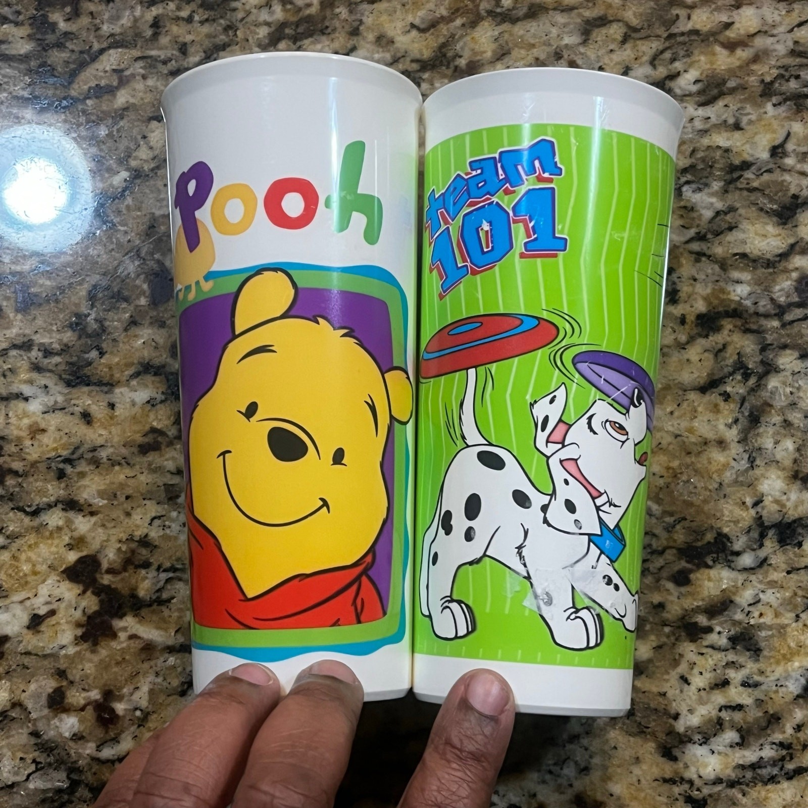 Vintage Disney Tupperware Approx 10 oz Kids Cups Pooh Piglet 101 Dalmatians