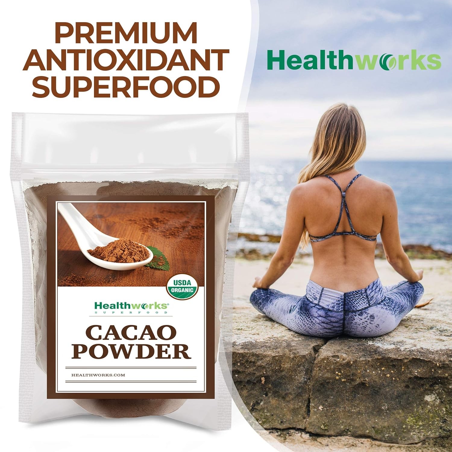 Organic Cacao Powder 16 oz Rich Chocolate Flavor, Sugar-Free, Keto Vegan