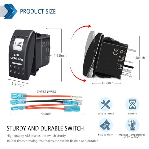 LED Light Bar Rear Lights Waterproof Rocker Switch On/Off 5 PIN SPST Red