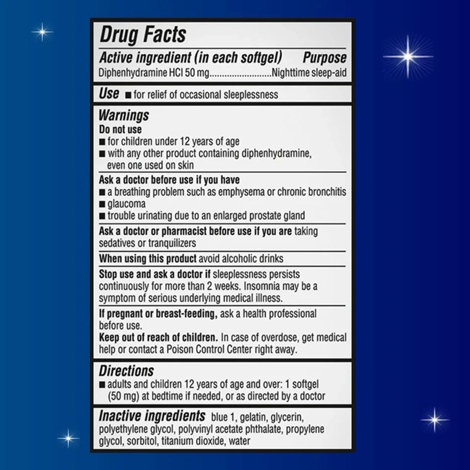 Unisom SleepGels Nighttime Sleep-Aid SoftGels, Diphenhydramine HCI 50 mg, 100 Ct