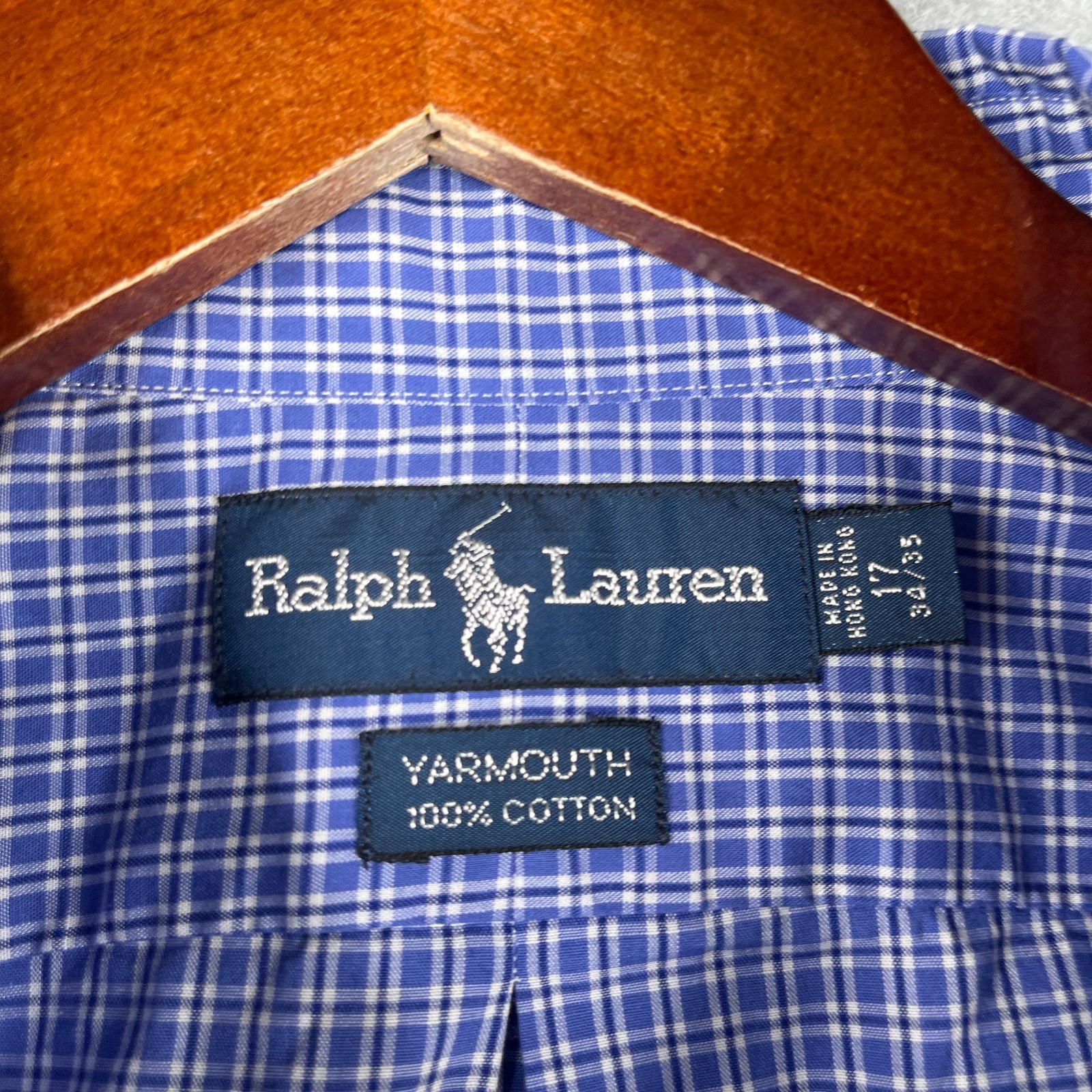 Ralph Lauren Yarmouth Shirt 17 Blue Check Casual Pony Button Up Long Sleeve Mens