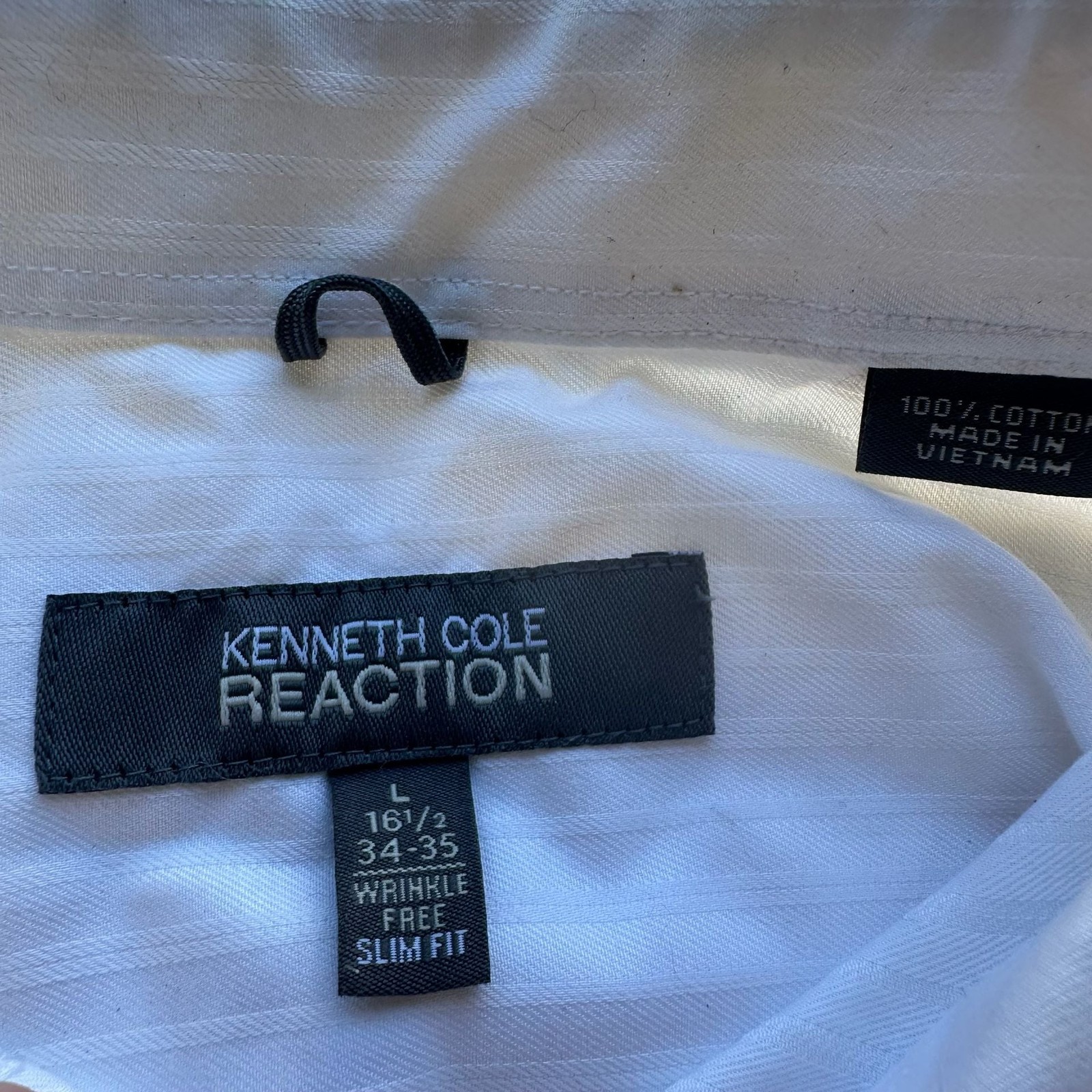 как выглядит Kenneth Cole Reaction Mens Wrinkle Free Slim Fit White Striped Dress Shirt 16 1 фото