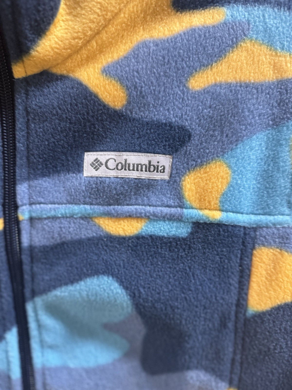 как выглядит Columbia Boys Blue Yellow Camo Zing III Youth Small Fleece Jacket фото