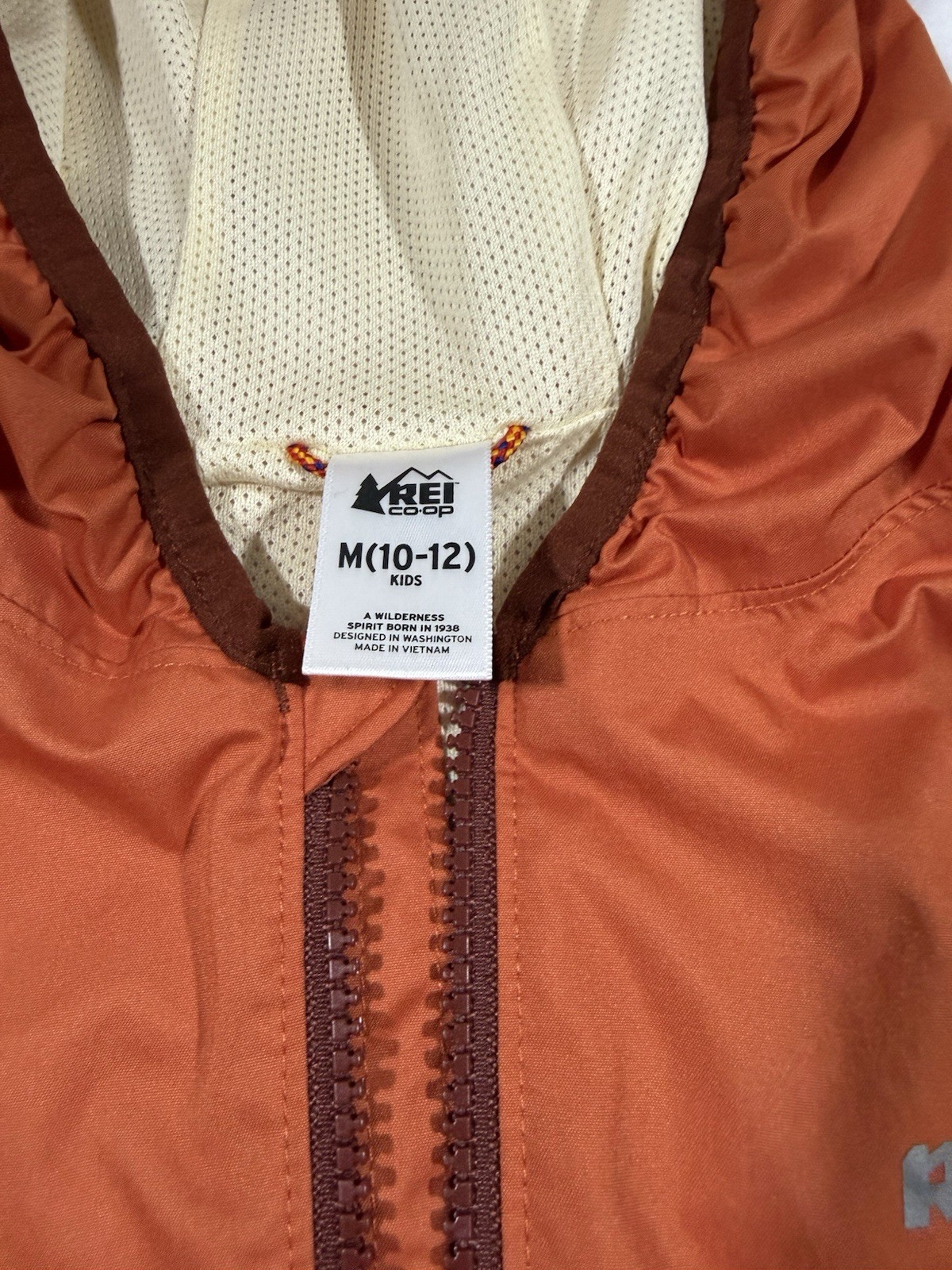 REI Co-Op Kids Unisex Orange Hooded Zip Windbreaker Size M 10/12