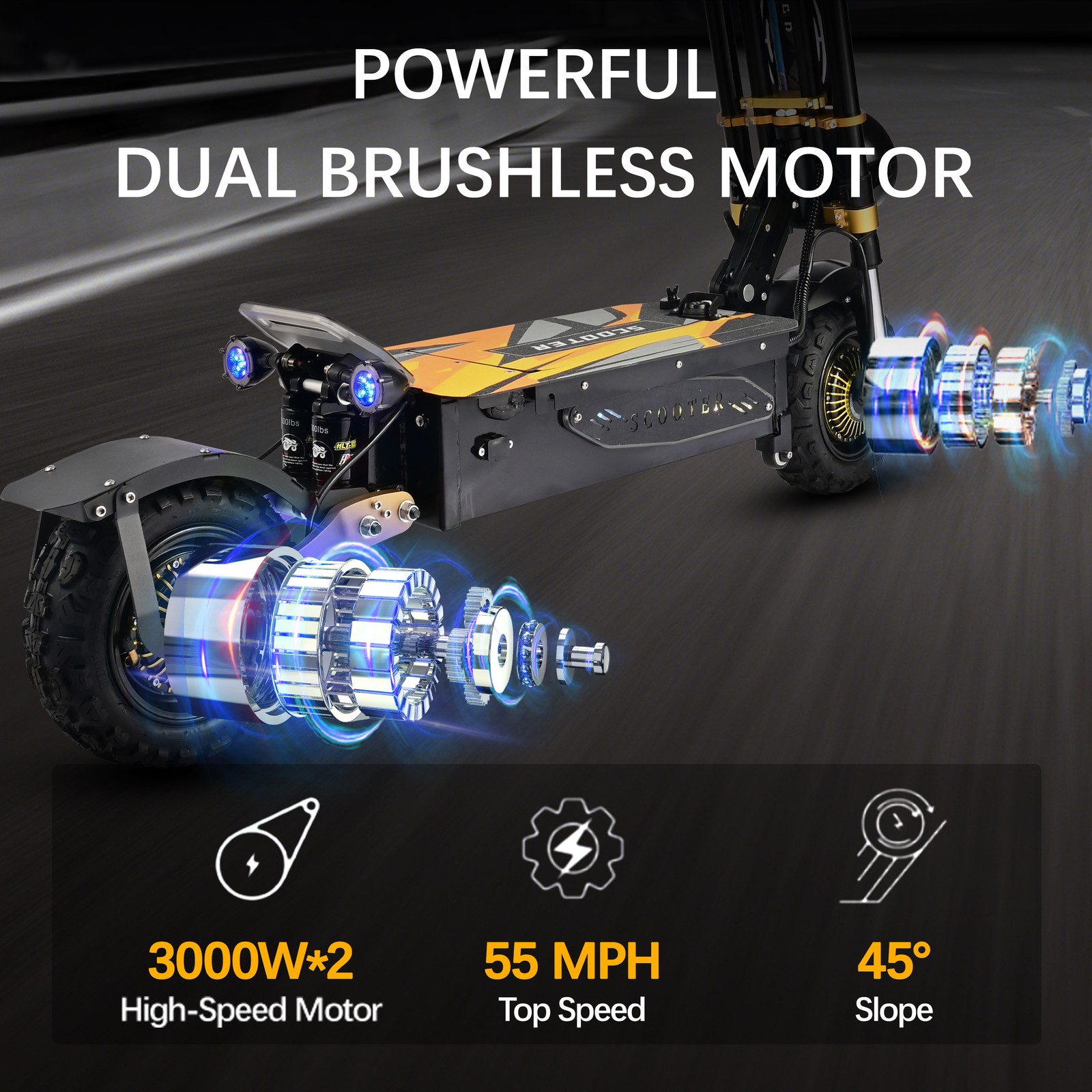 6000W Foldable Electric Scooter Adult Dual Motor 55MPH 60V40AH 80Miles 11 Tire