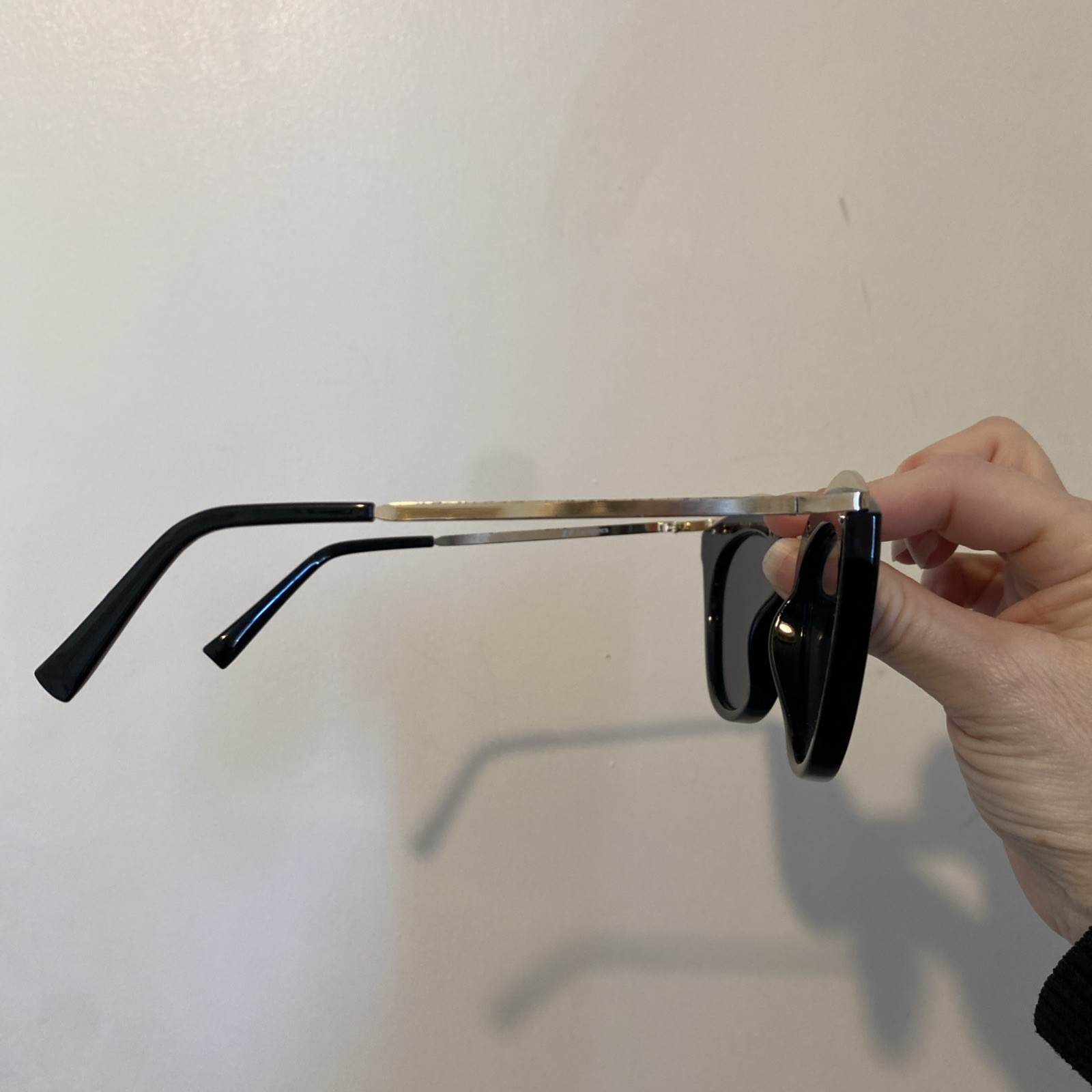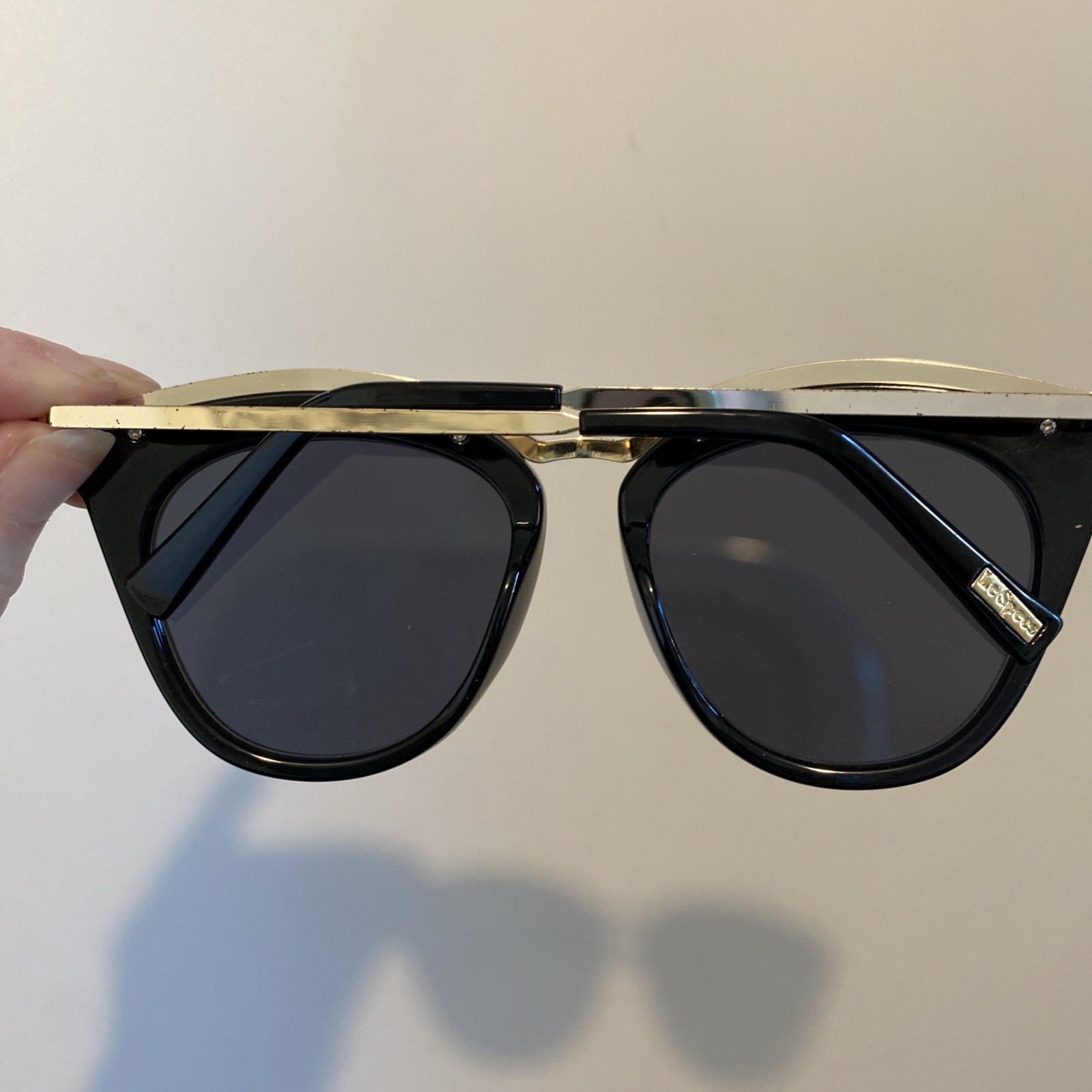 как выглядит Le Specs Eye Slay Polarized Sunglasses Matte Black Gold Frame Vintage Style фото