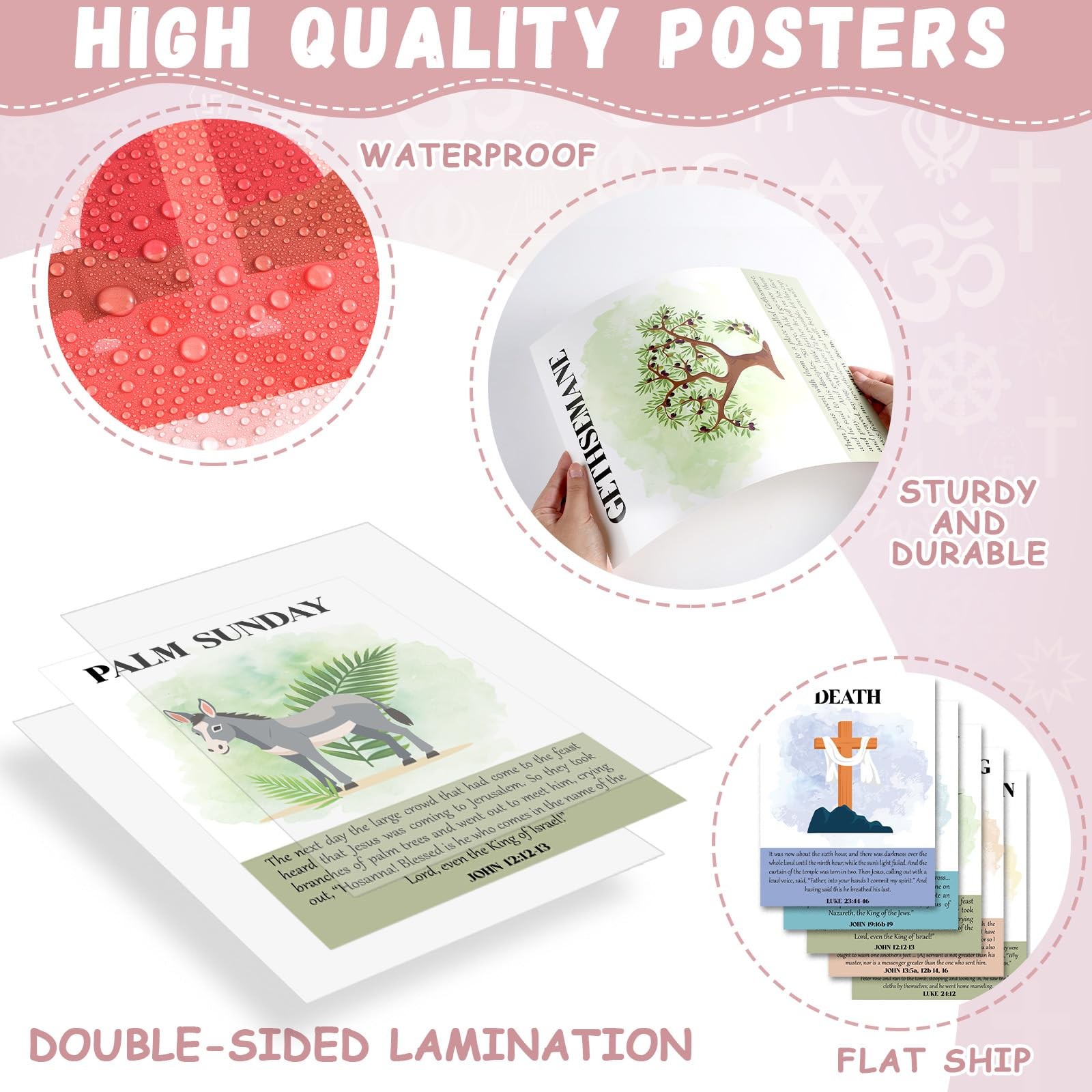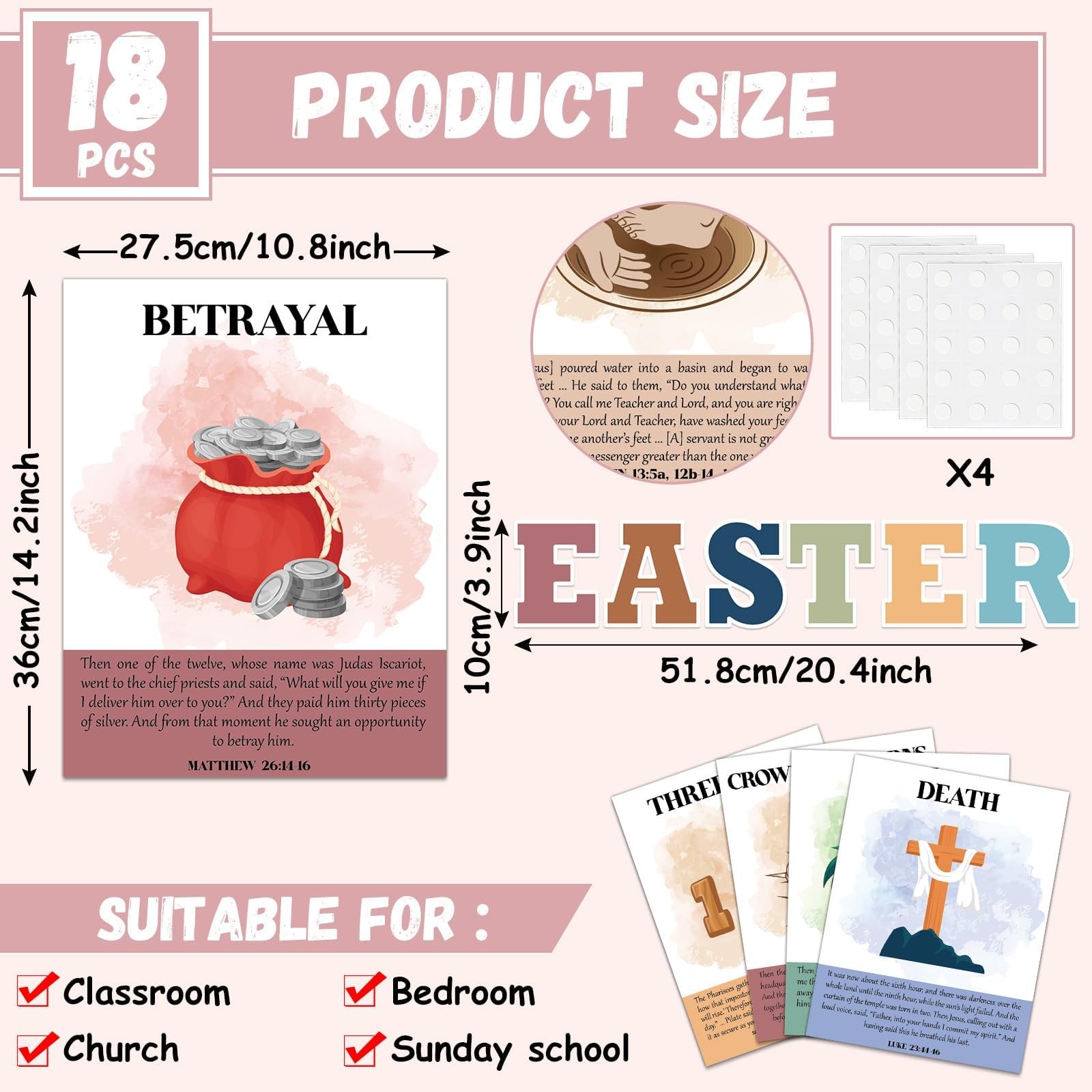 18Pcs Easter Story Posters Boho Christian 14 x 11 inches, Colorful