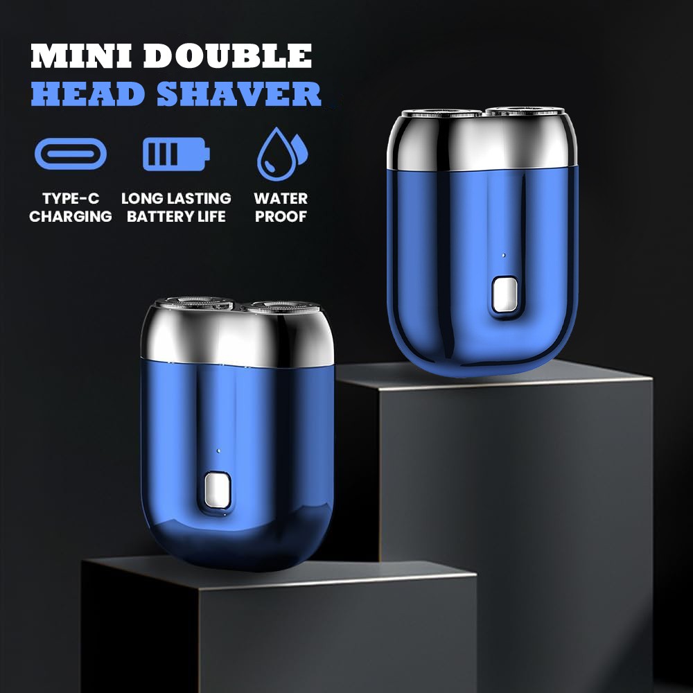 Mini Dual-Head Electric Shaver Waterproof USB Rechargeable Portable Tool, Blue