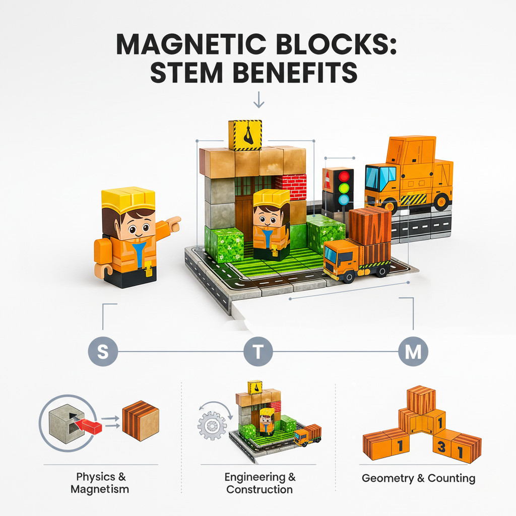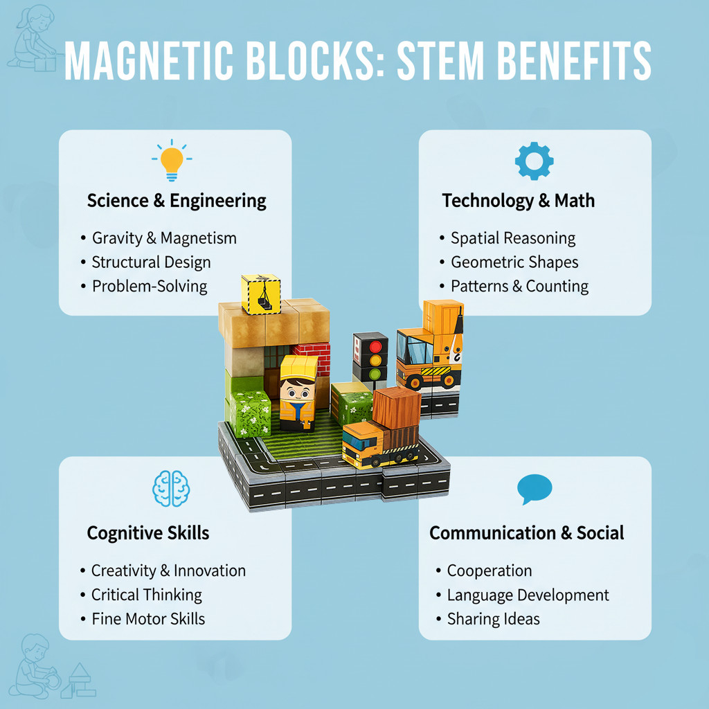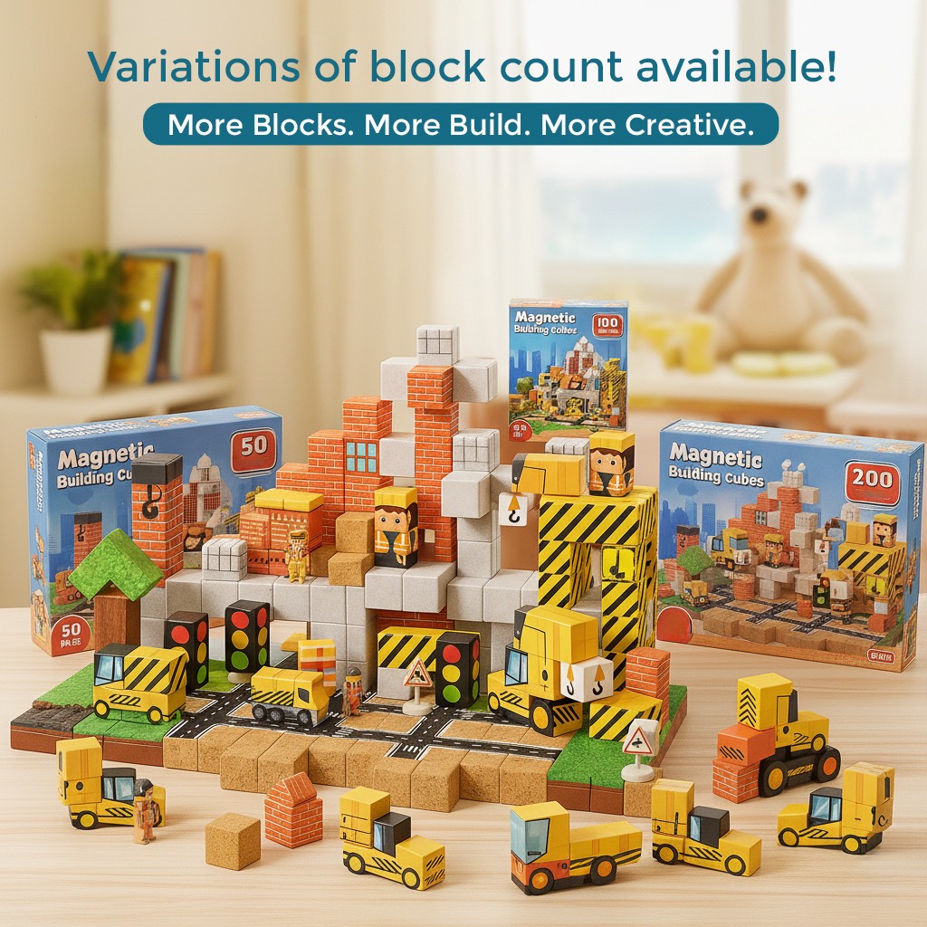 Magnetic Blocks Building Set - 150pc Block Construction Theme for Parents