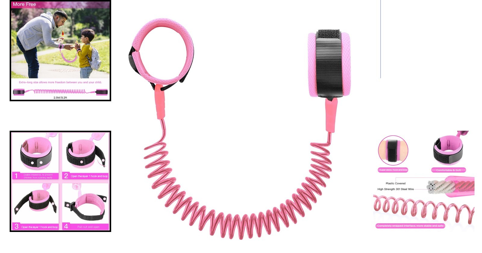 как выглядит Comfortable Pink Child Leash - Elastic 8.2ft Wristband for Active Toddlers фото