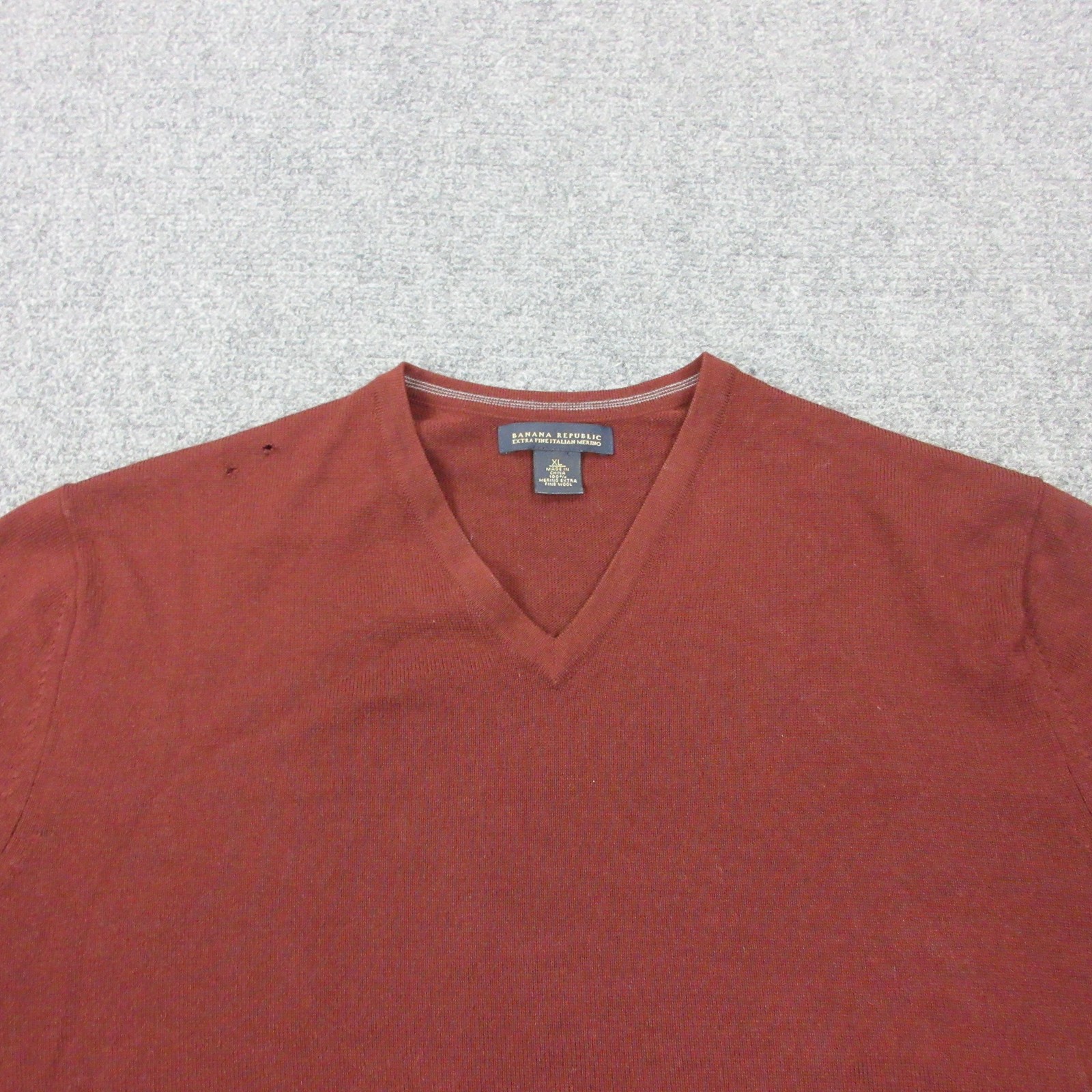 как выглядит Banana Republic Sweater Mens XL Red Extra Fine Merino Wool Knit V Neck Pullover фото