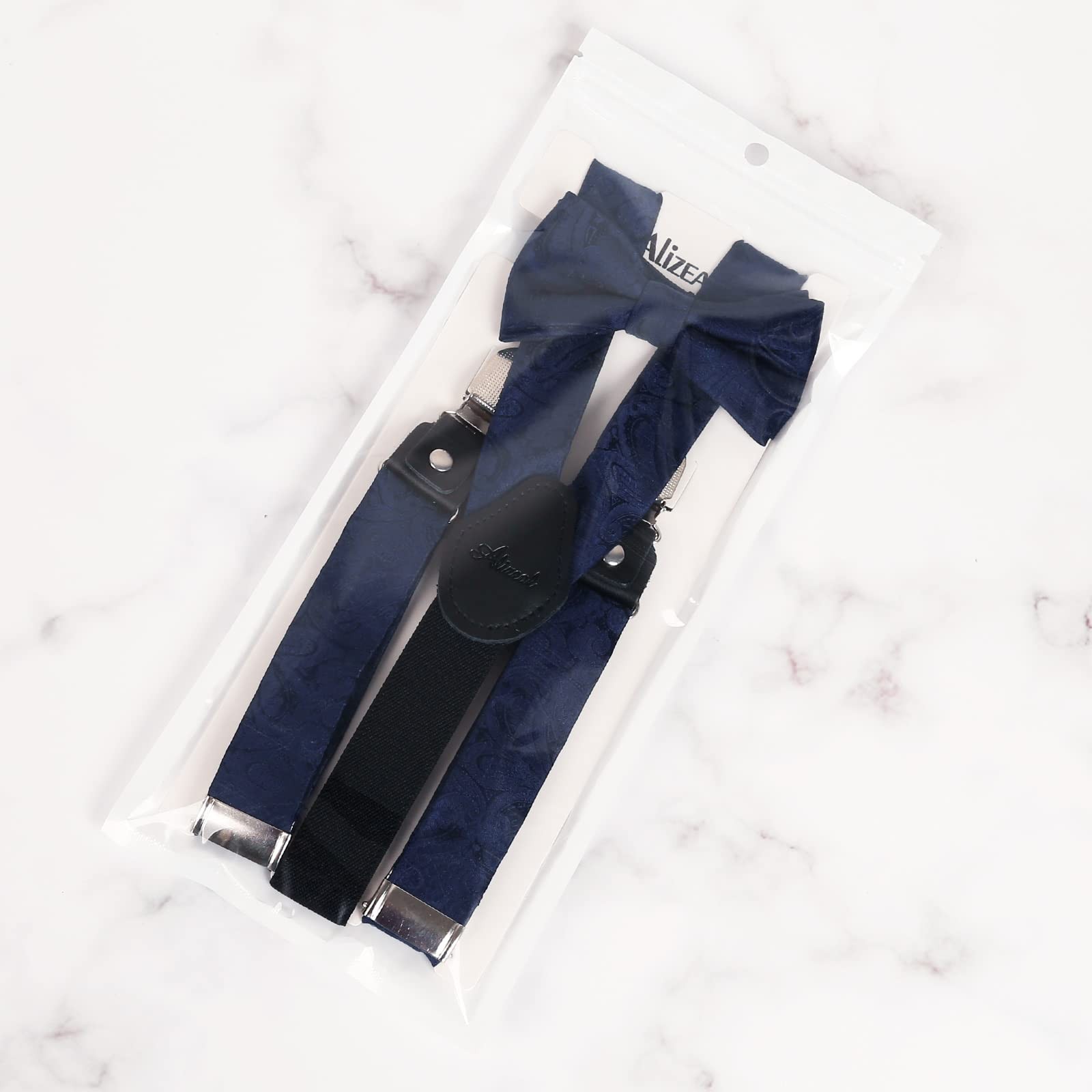 Boys Adjustable Floral Paisley Pre-tied Bow Tie and Elastic Y Shape 3 Clips S...