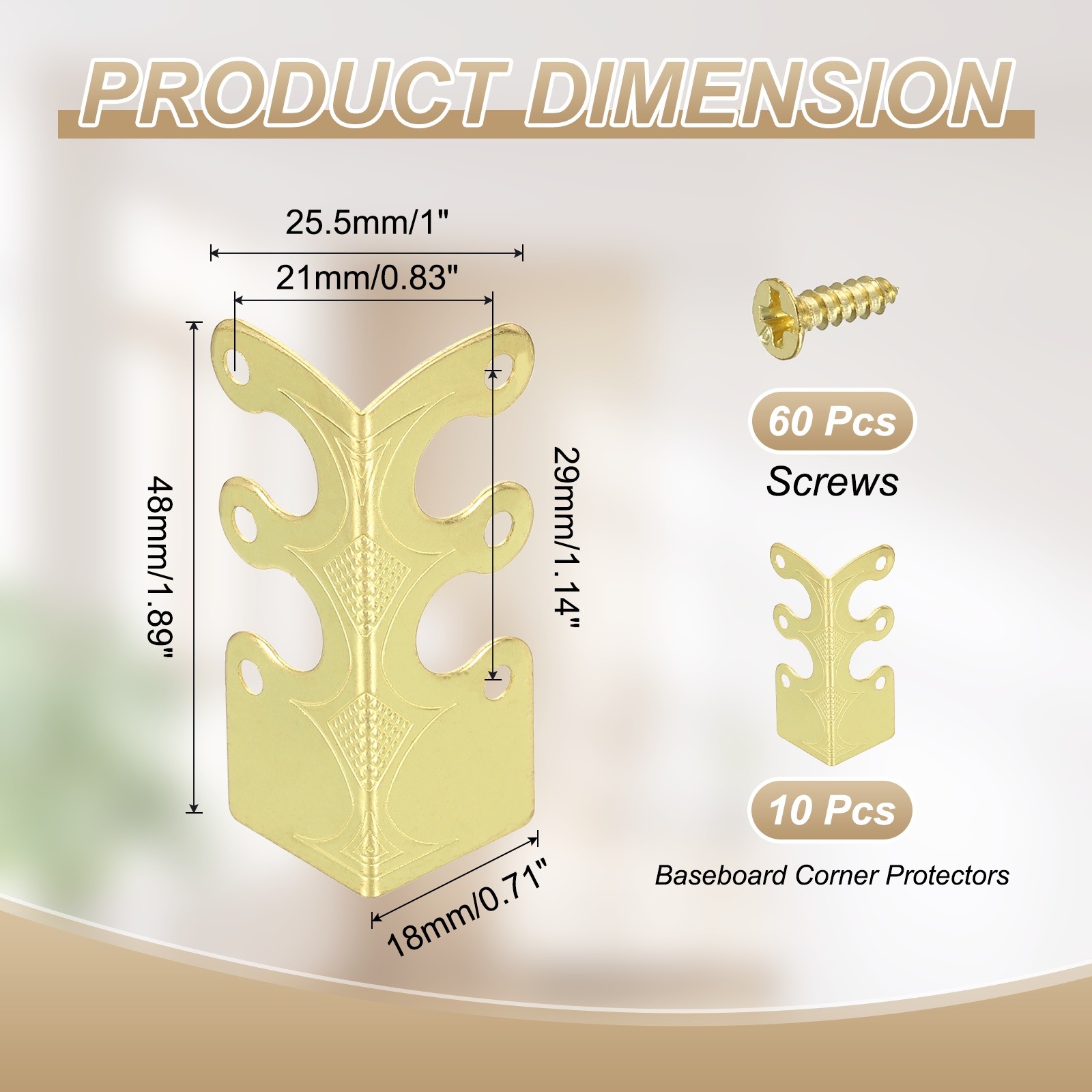 как выглядит 10 Pcs Baseboard Corner Protectors, Metal Edge Cover with Screws, Yellow фото