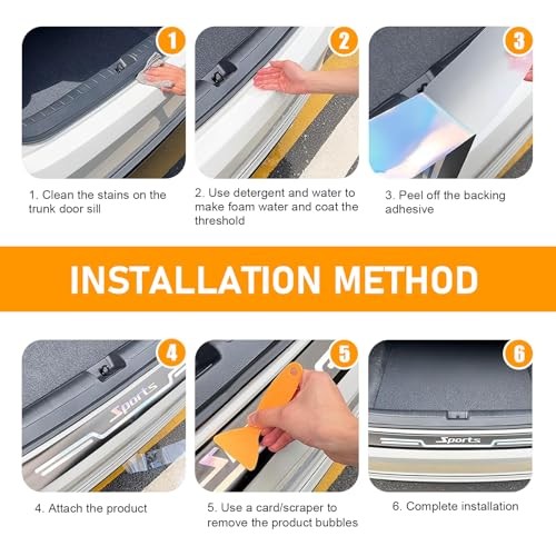 5 PCS Car Door Sill Protector, Anti-Scratch Rear Trunk Bumper Strip, Laser Car
