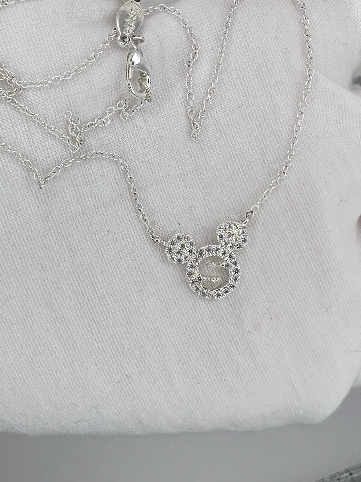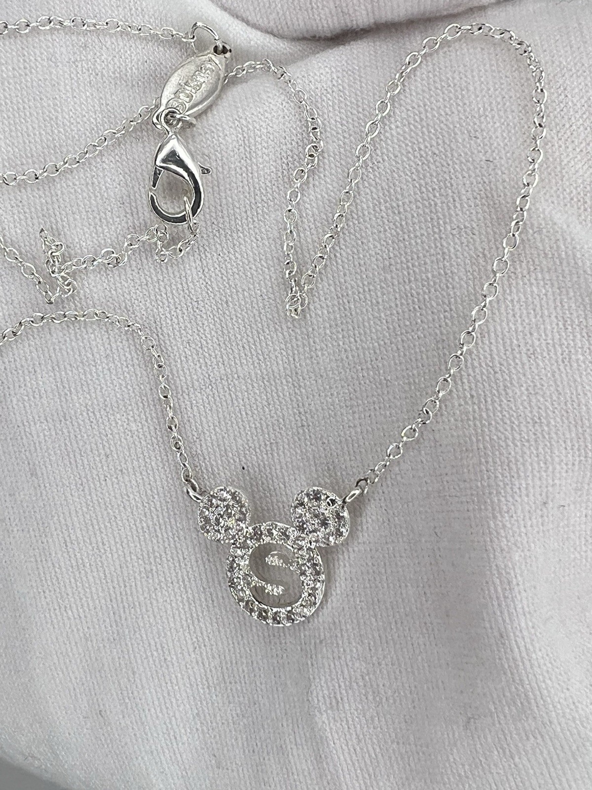 как выглядит Disney Mickey Mouse Initial S Rhinestone Pendant Necklace Silver Tone фото