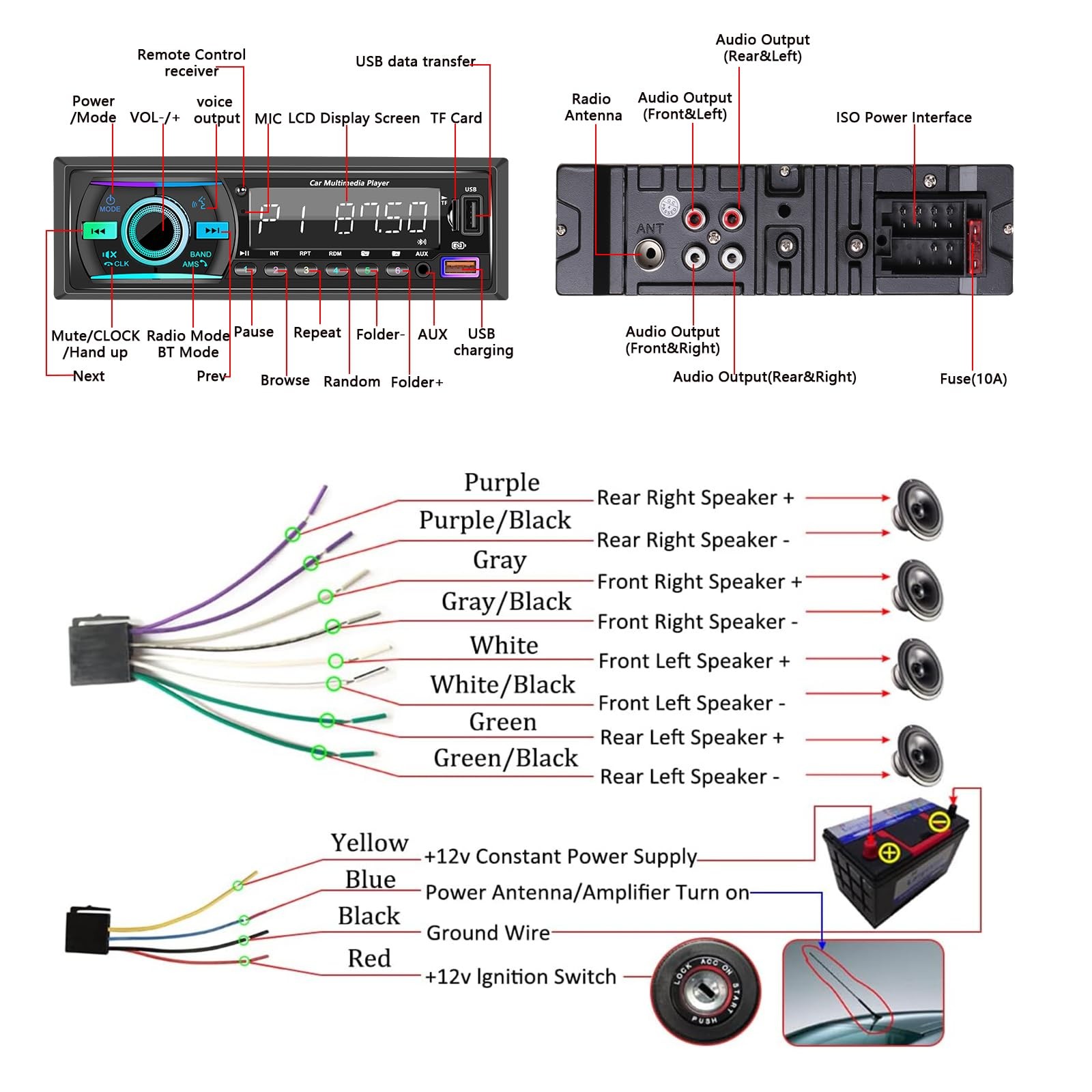 Included Components: Bluetooth, Fm, Usb, Aux, Digital Lcd