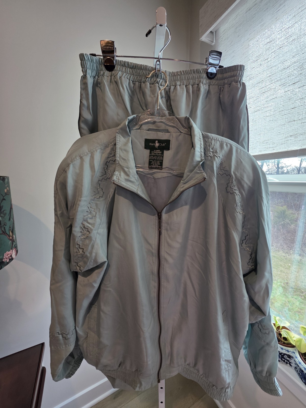 как выглядит VTG Womens XL 100 Silk Tracksuit 80s/90s Aztec Print Seafoam Green фото