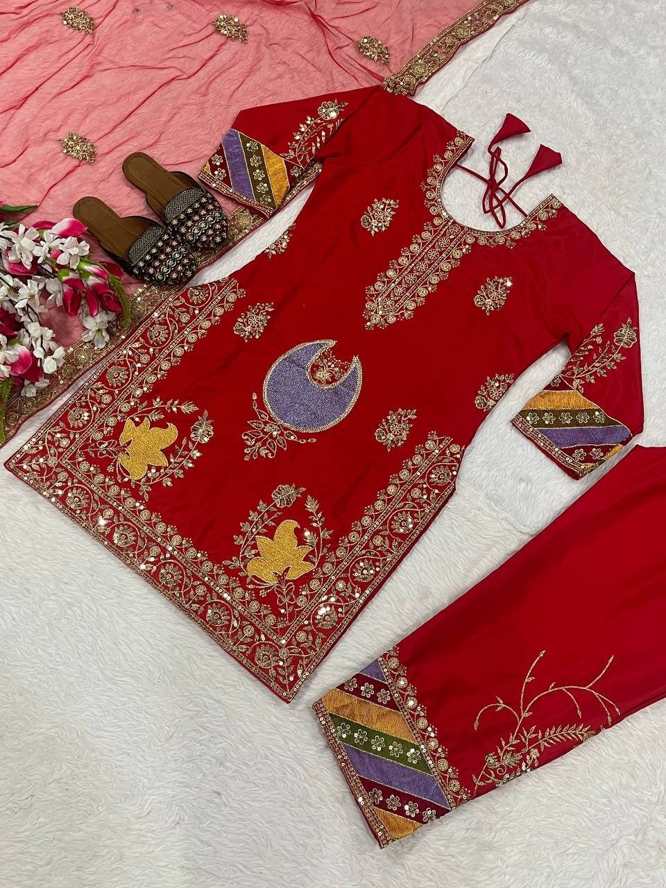 как выглядит Latest Heavy Natural Crep Silk Red Salwar Kameez With Dupatta For Women Girls фото
