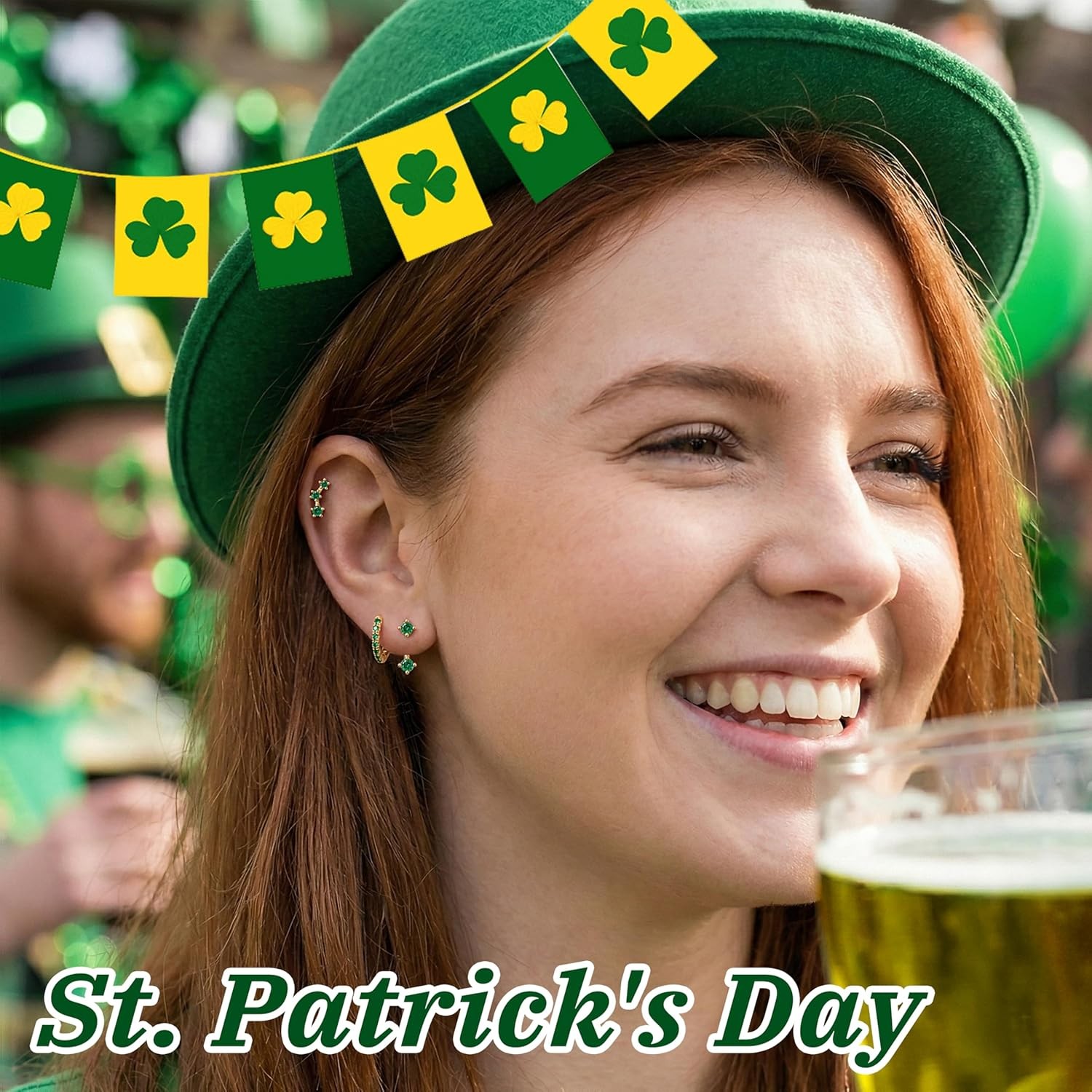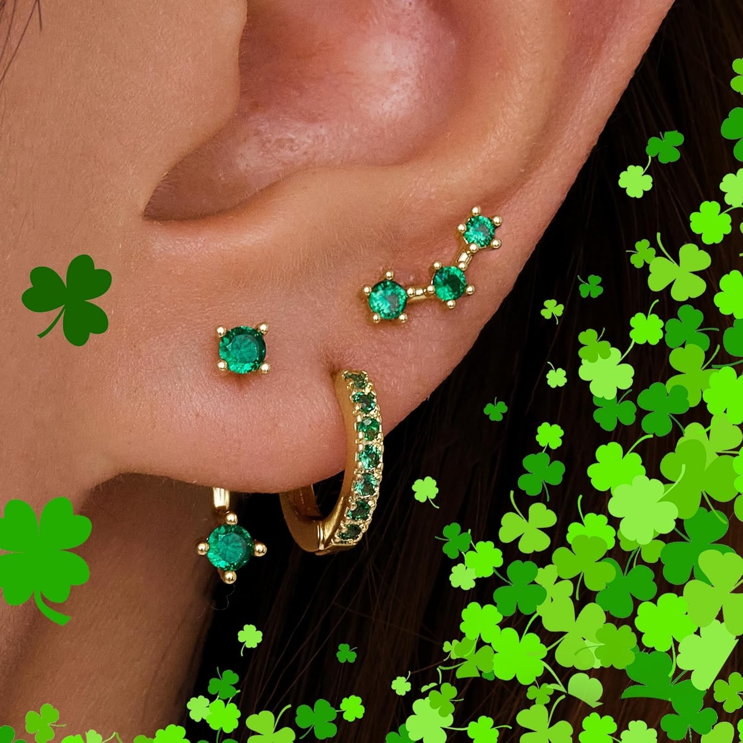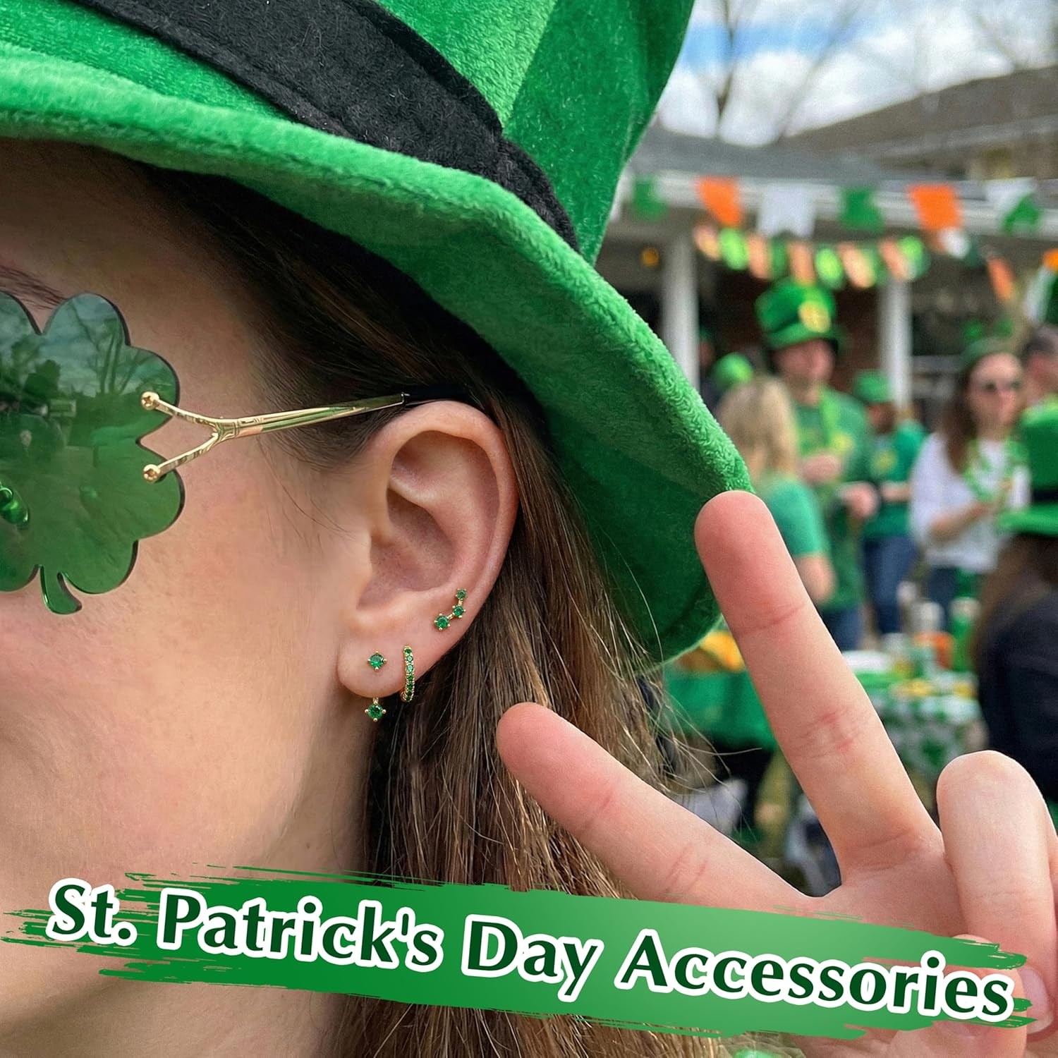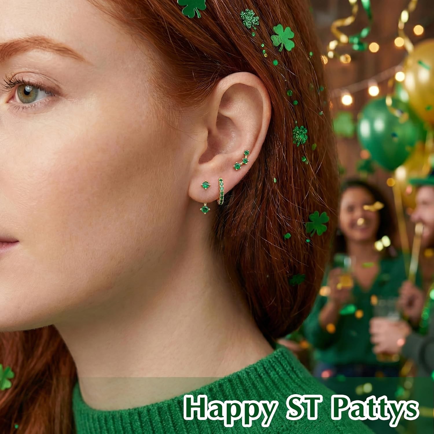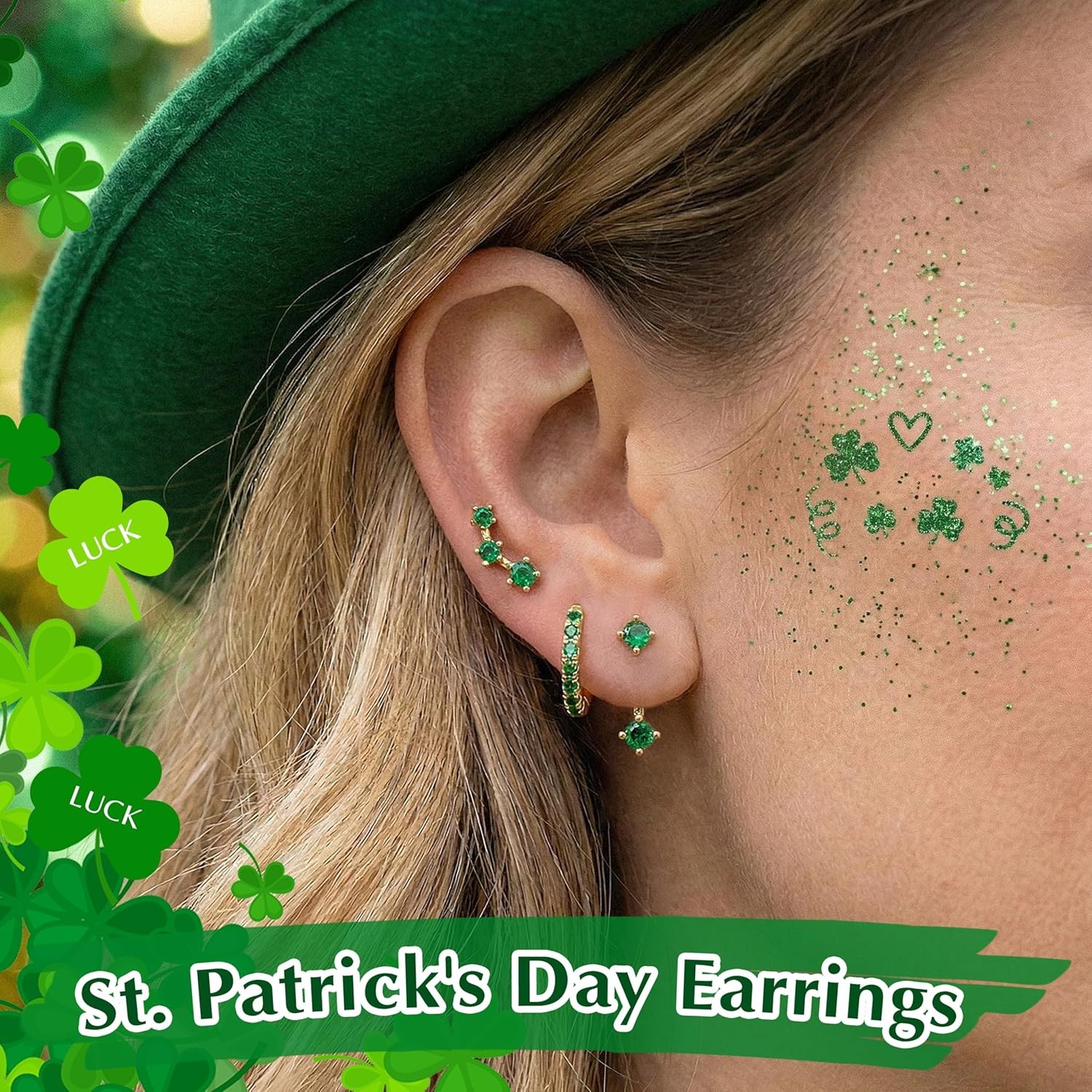 3 Pairs St Patrick s Day Gold Plated Hypoallergenic Stud Huggie Earrings Set