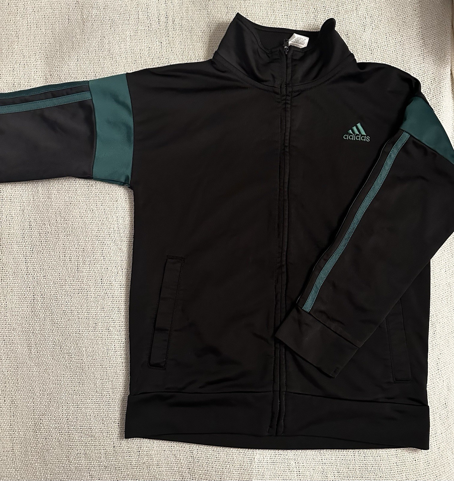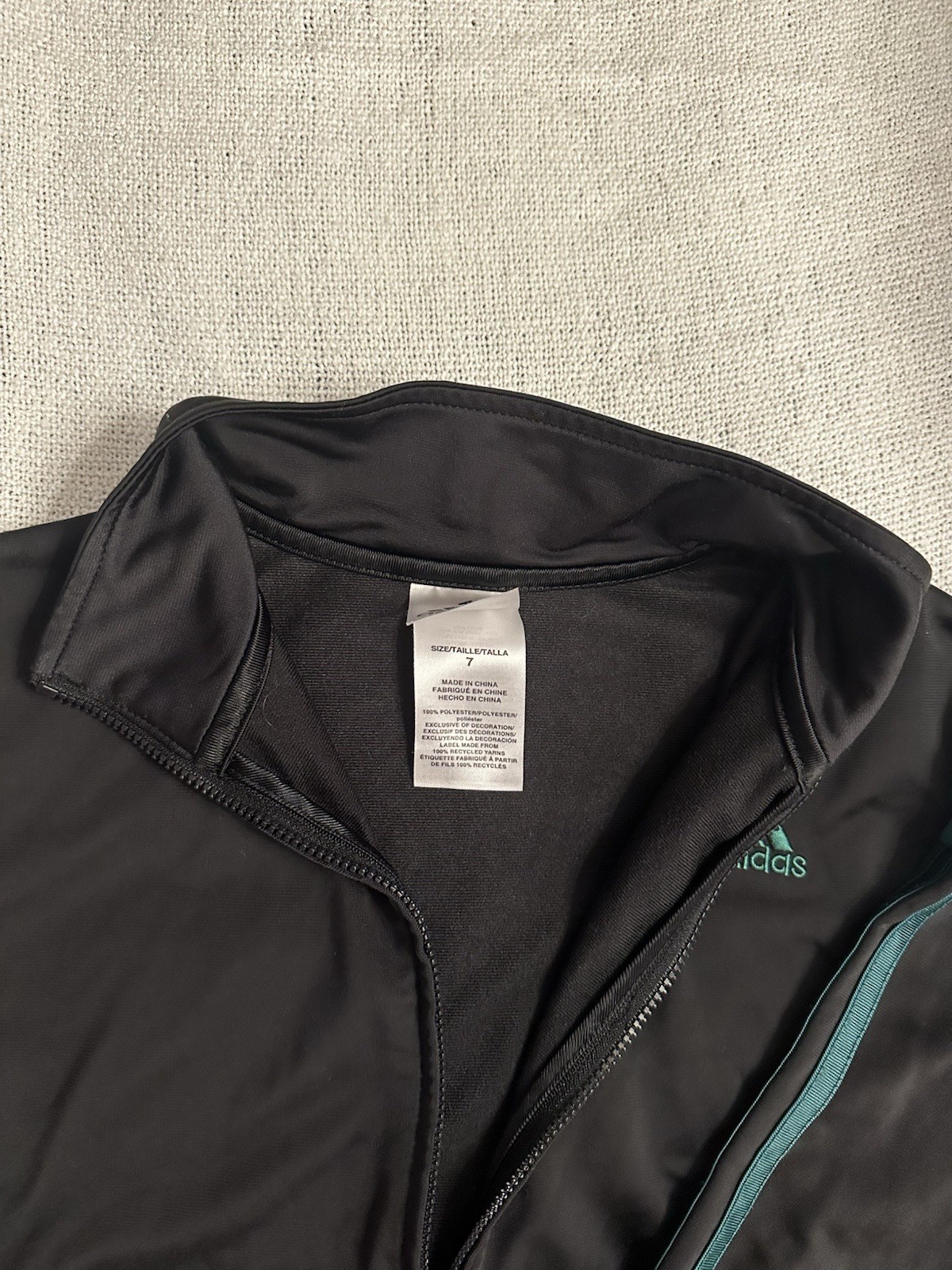 adidas Boys Black Green Tracksuit Set Jacket Pants Size 7