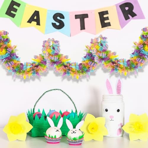33 FT Easter Tinsel Garland Colorful Egg Tinsel Twist Garland with Confetti