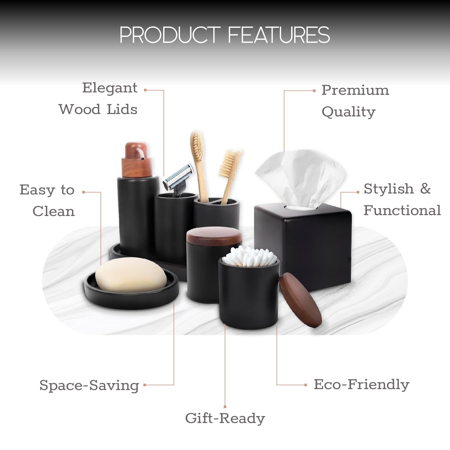 9-Piece Bathroom Set with Elegant Wood Lids Bathroom Soap Dispenser Tumbler...