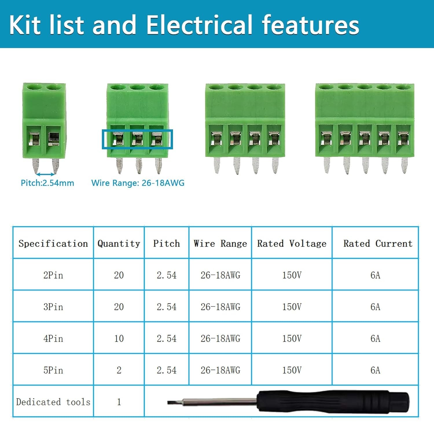 52PCS 2.54mm 0.1 Pitch PCB Mount Screw Terminal Block Connector, 2P 3P 4P 5P...