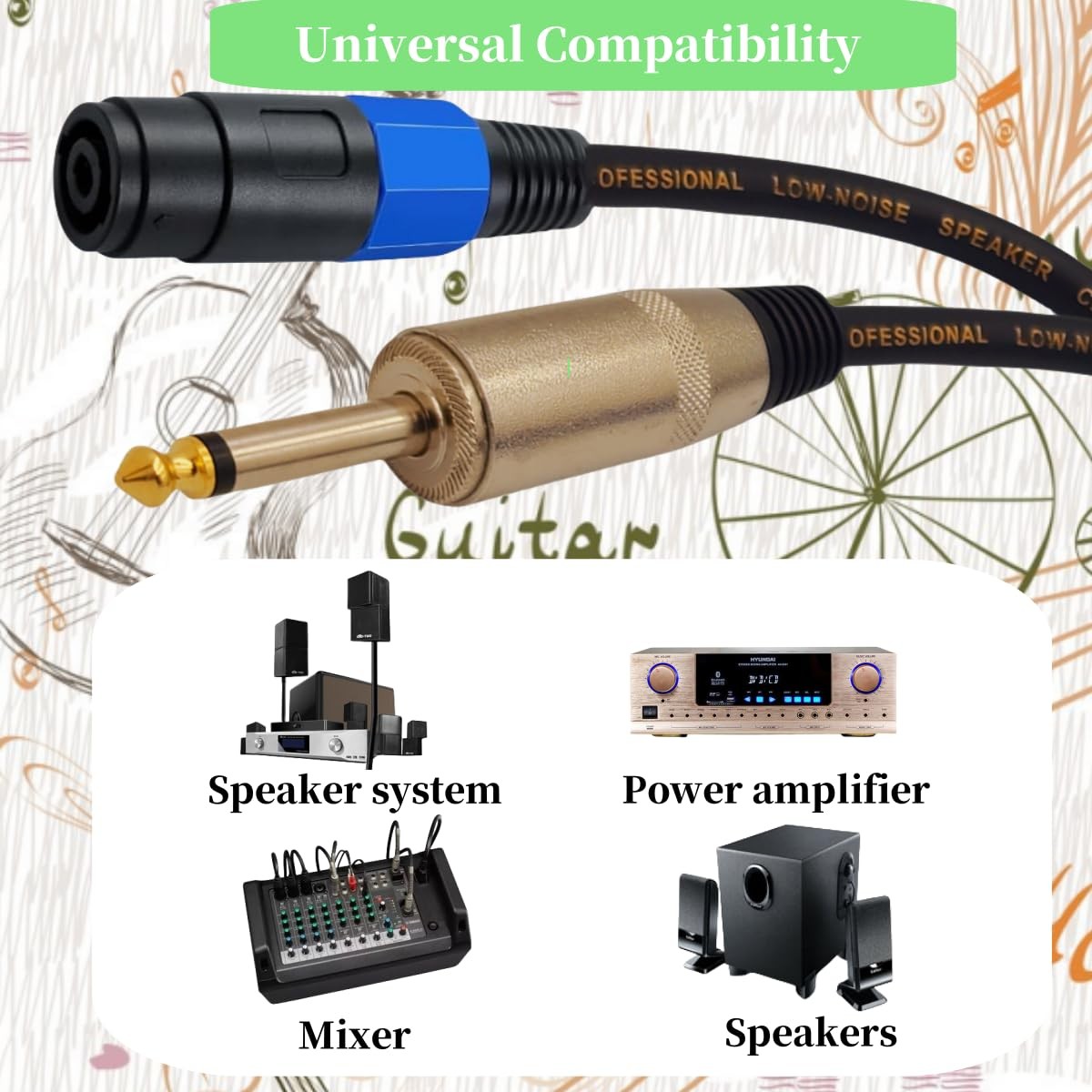 2 Pack 1/4 Male Speakon Female Cable Adapter 6.35mm TS Plug Connector