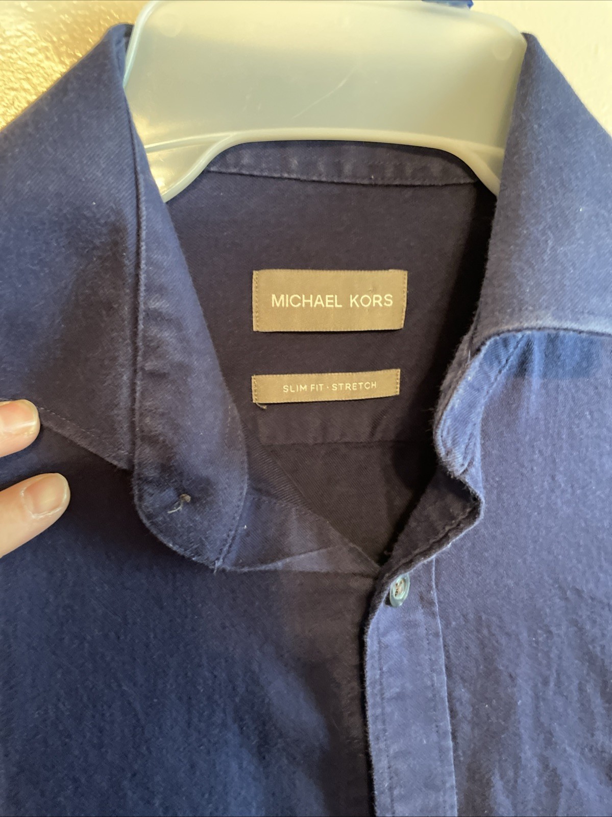 как выглядит Michael Kors Slim-Fit Stretch Navy Button Up See pics For Measurements фото