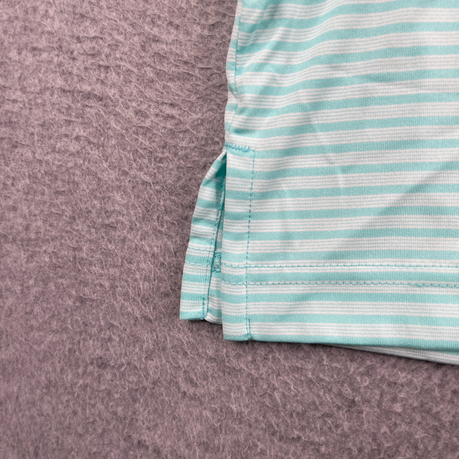 PGA Tour Performance Golf Polo Shirt Mens Large Teal White Striped Stretch NEW