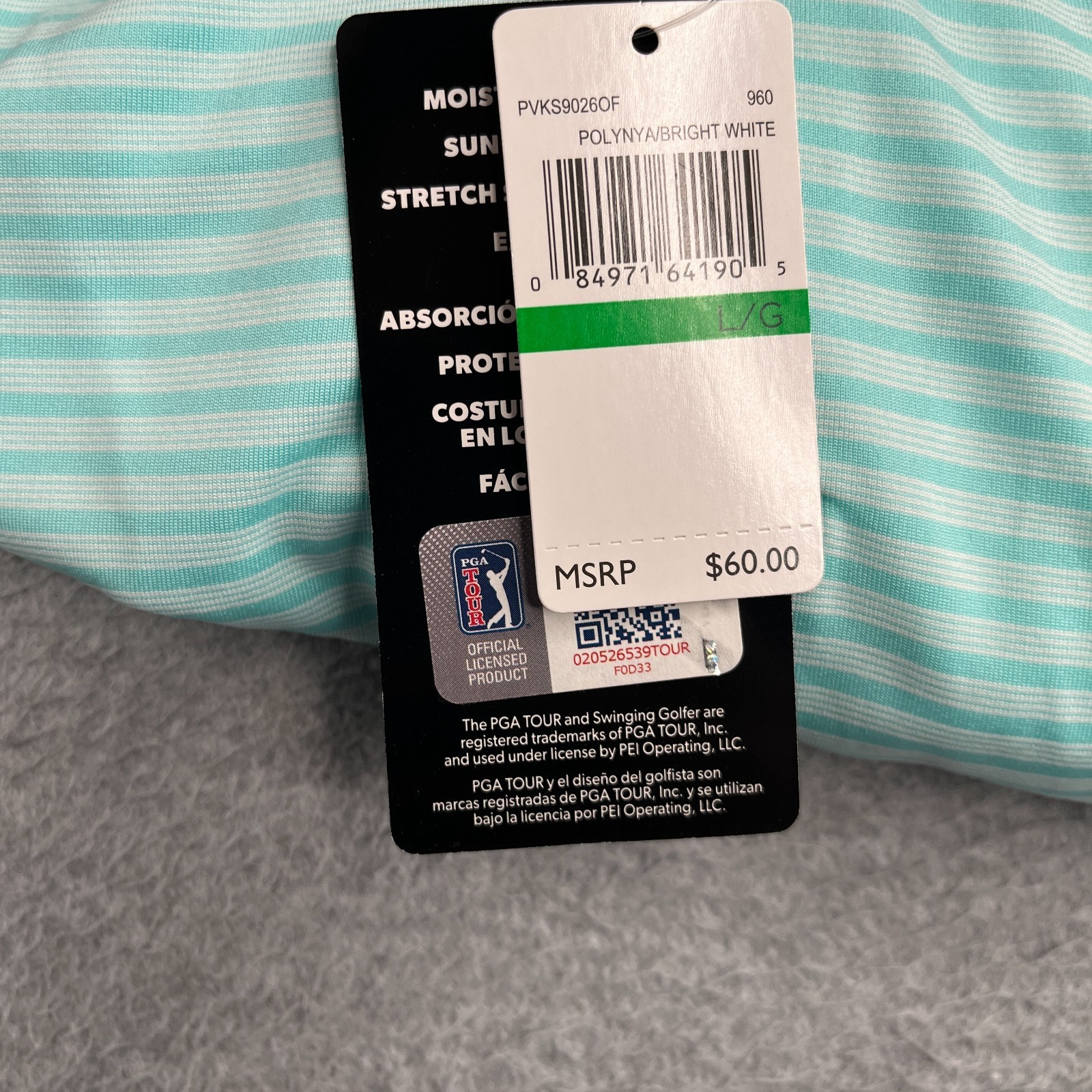 как выглядит PGA Tour Performance Golf Polo Shirt Mens Large Teal White Striped Stretch NEW фото