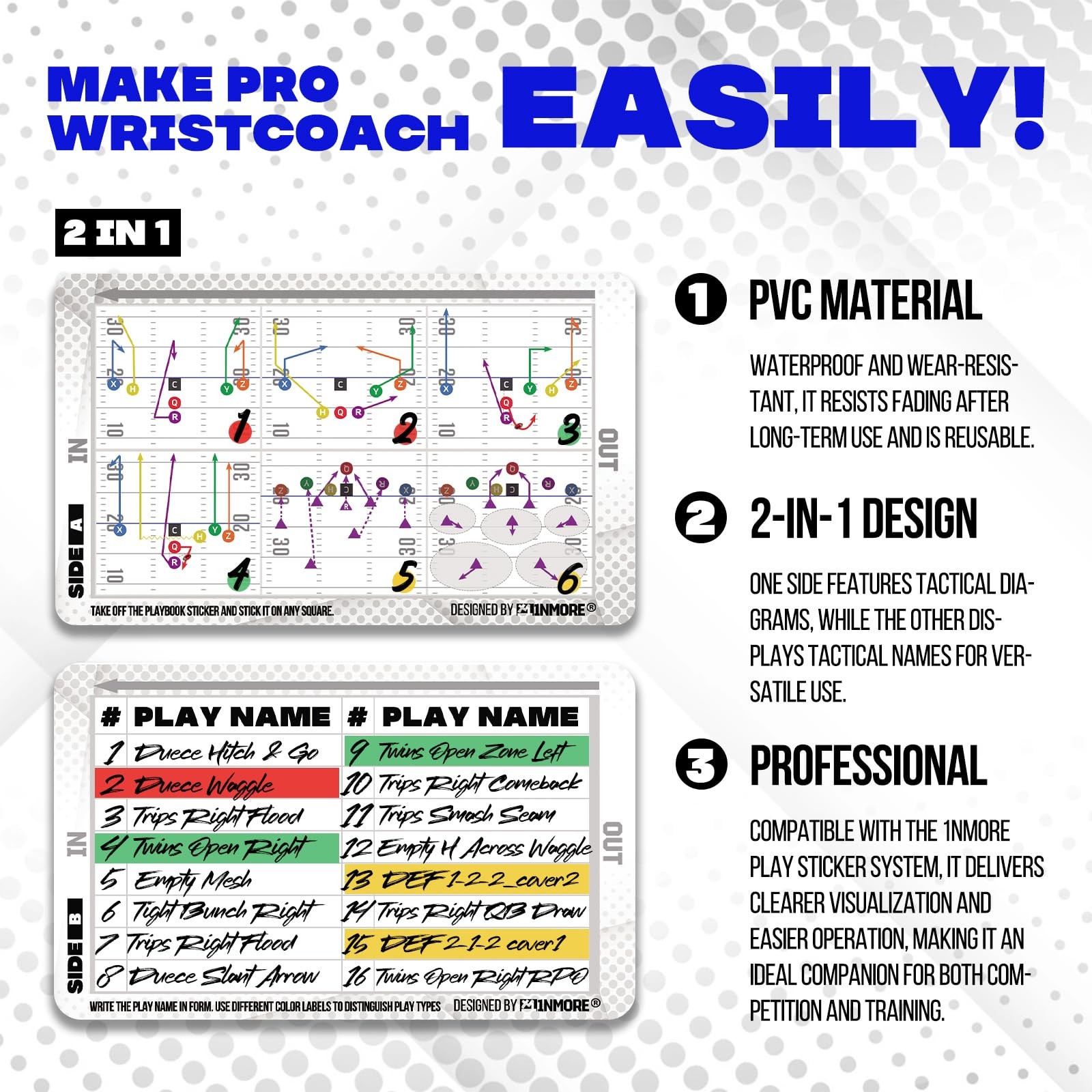 1NMORE 12PCS 24PCS Wristbands Playbook Cards, Youth Quarterback Medium, 12Pcs