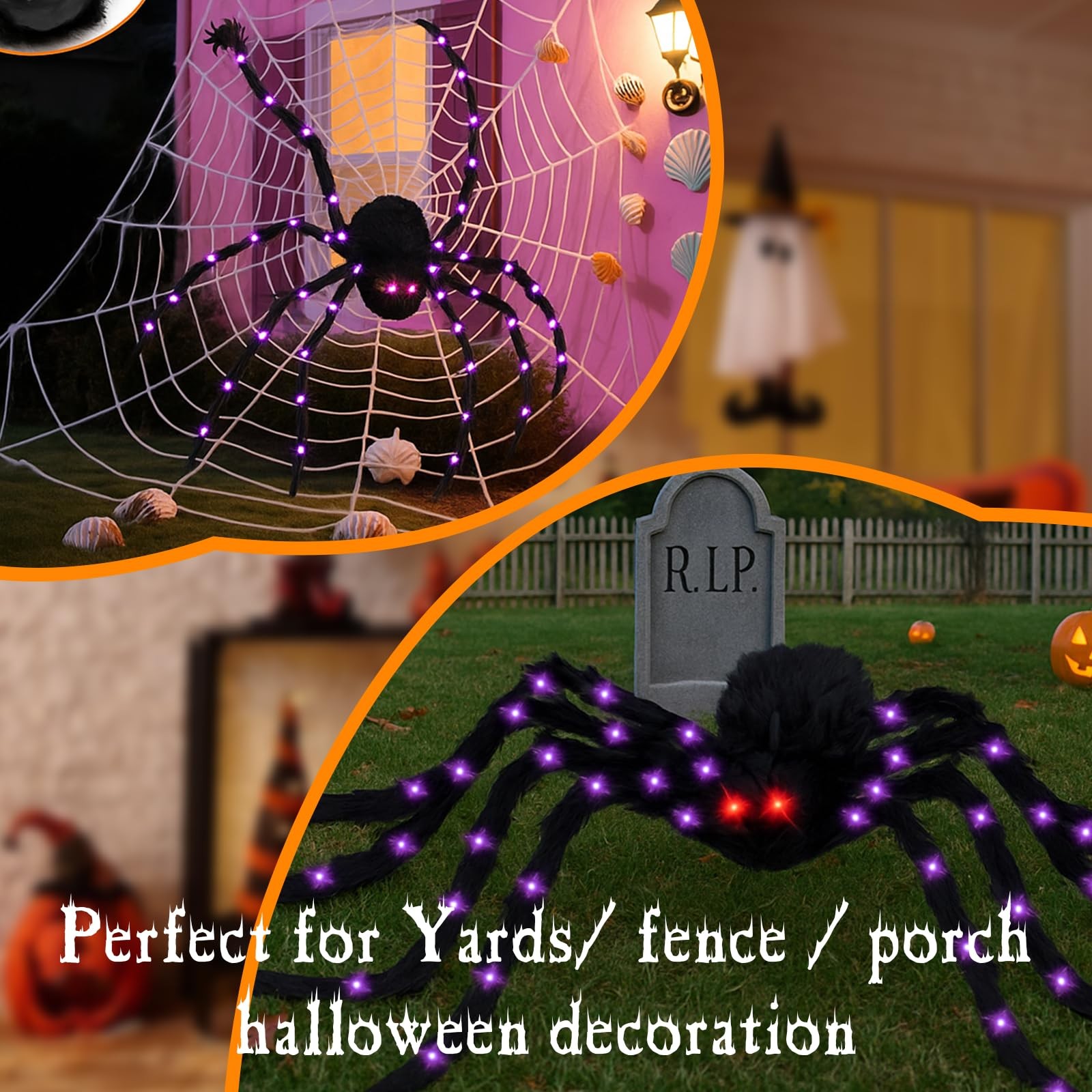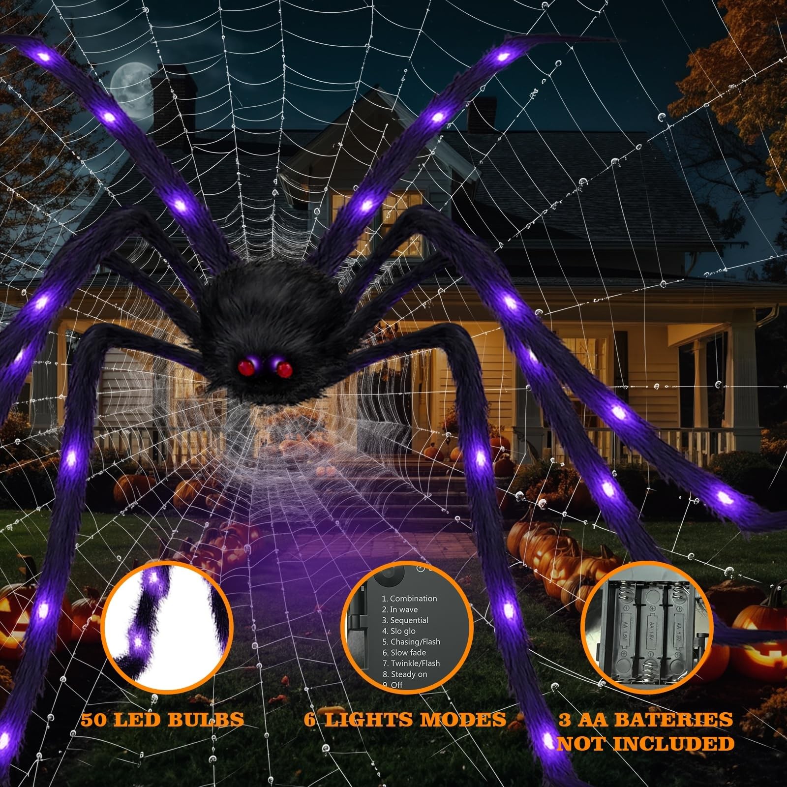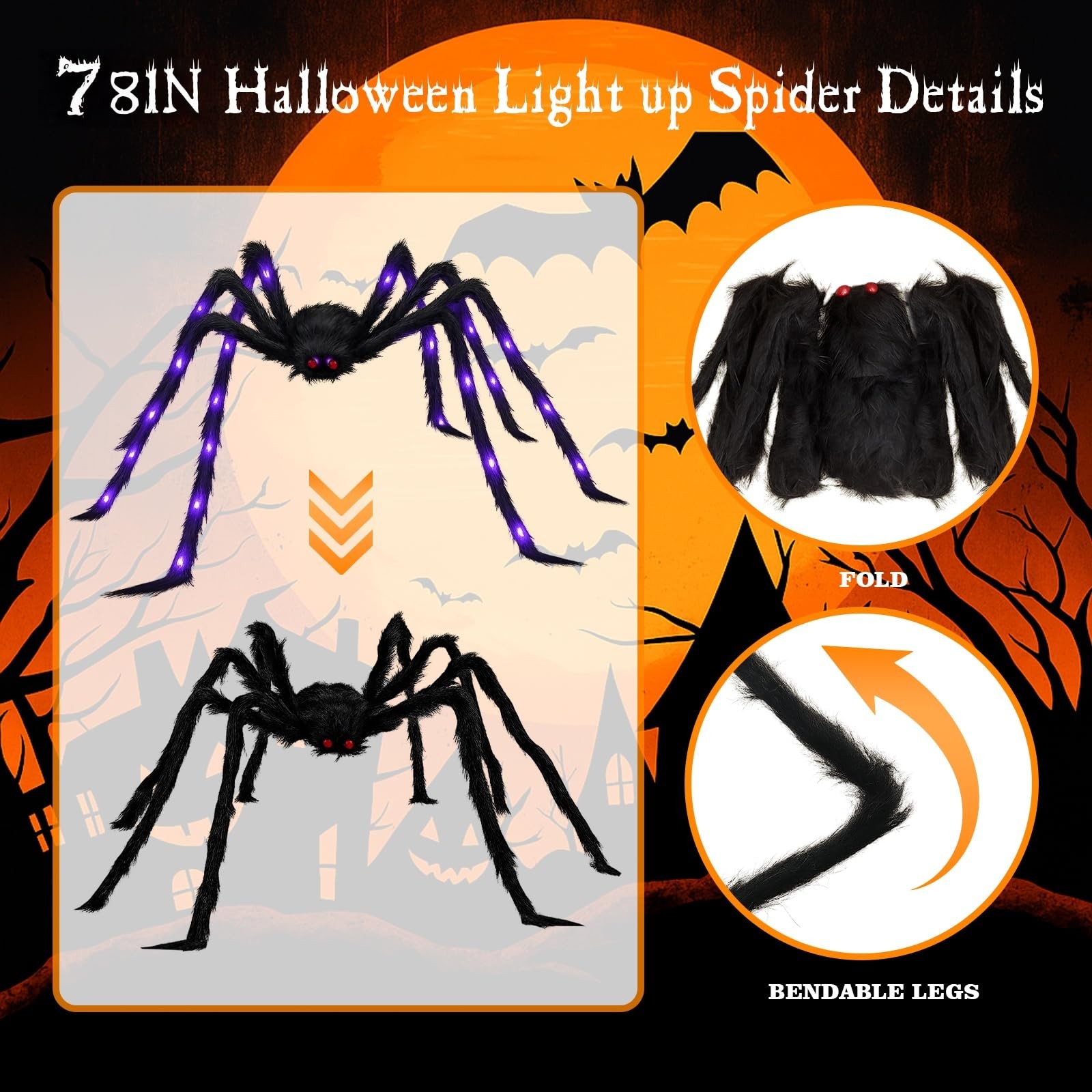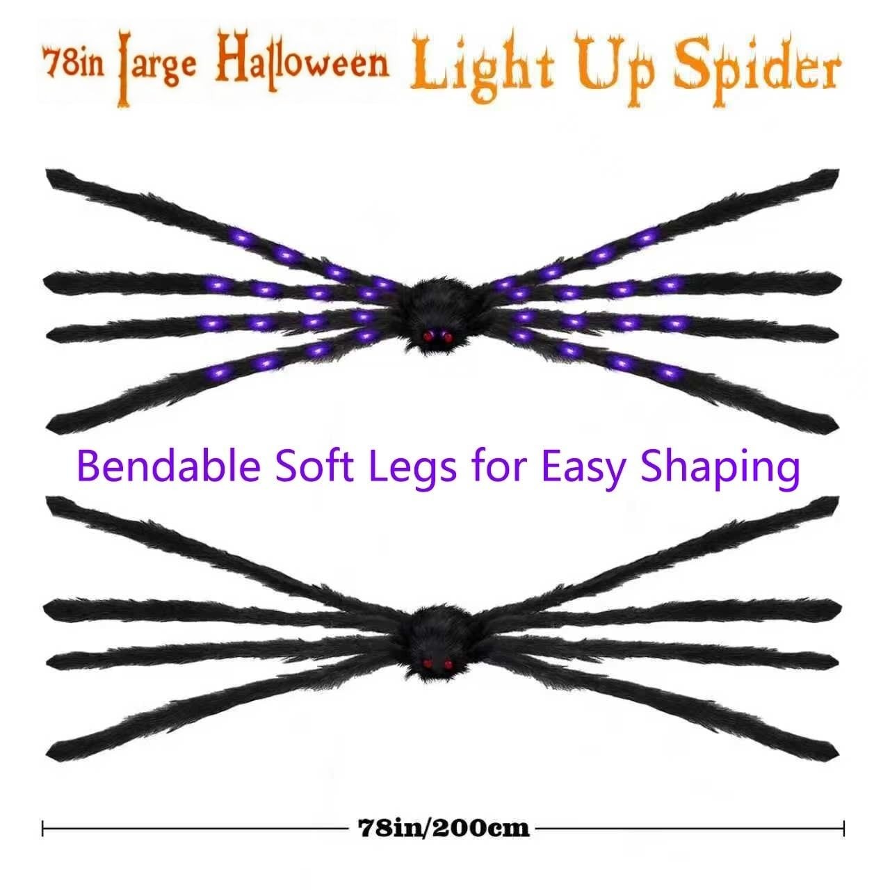 2Pack Upgraded 6.6FT Giant Spiders Halloween Spiders Decorations, 50LED Creep...