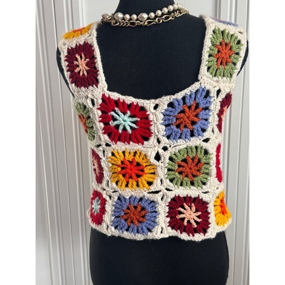 Crochet Granny Square Vest Top Sleeveless Boho Hippie Festival Colorful