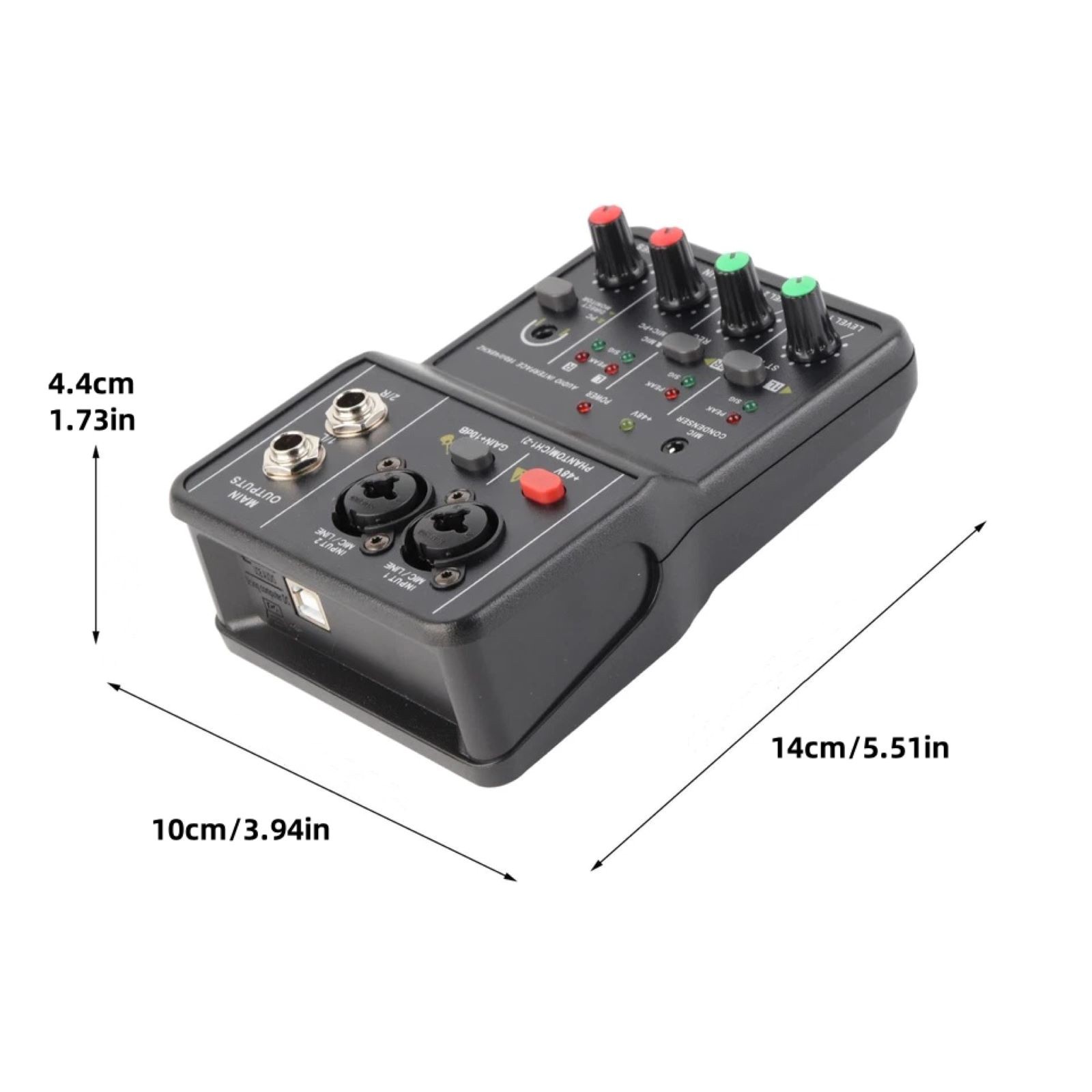 2-Channel Sound Card Audio Mixer for easy connection and plug-and-play operation