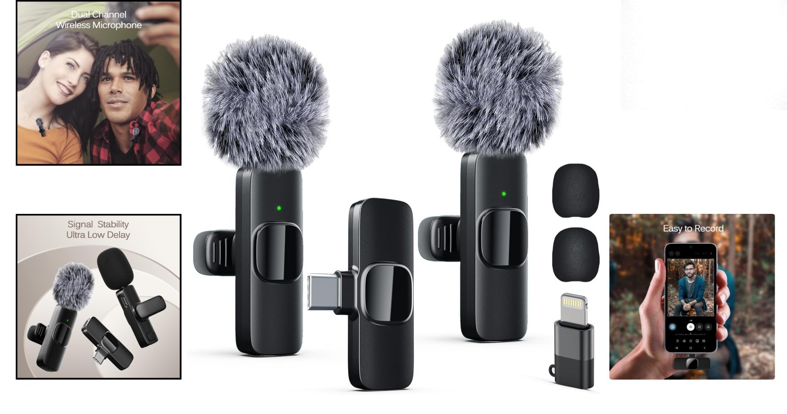 Dual Wireless Lavalier Microphones for iPhone and Type-C Devices - Plug Play