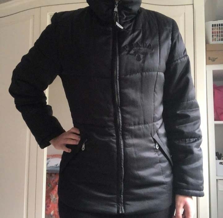 как выглядит Prada Sport Womens Black Mid-Length Quilted Puffer Zip Jacket Designer Logo фото