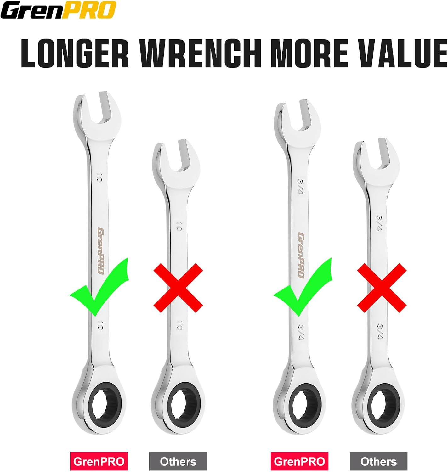 Ratcheting Wrench Set, Combination Wrench Set, 22-Piece SAE Metric and Standar