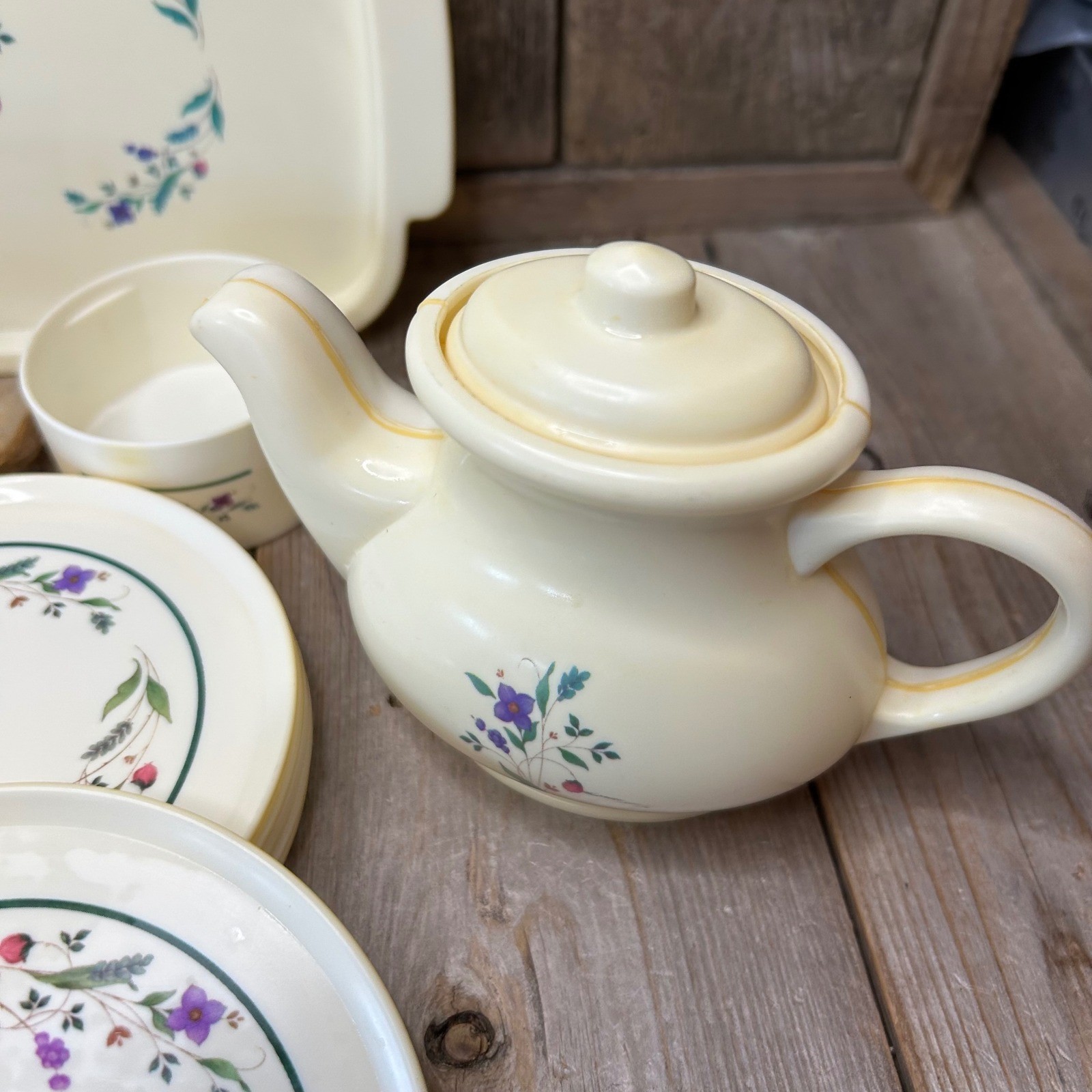 Vintage Tootsie Toy Kids Plastic Tea Set Floral Cream 21 Piece Toy Dishes