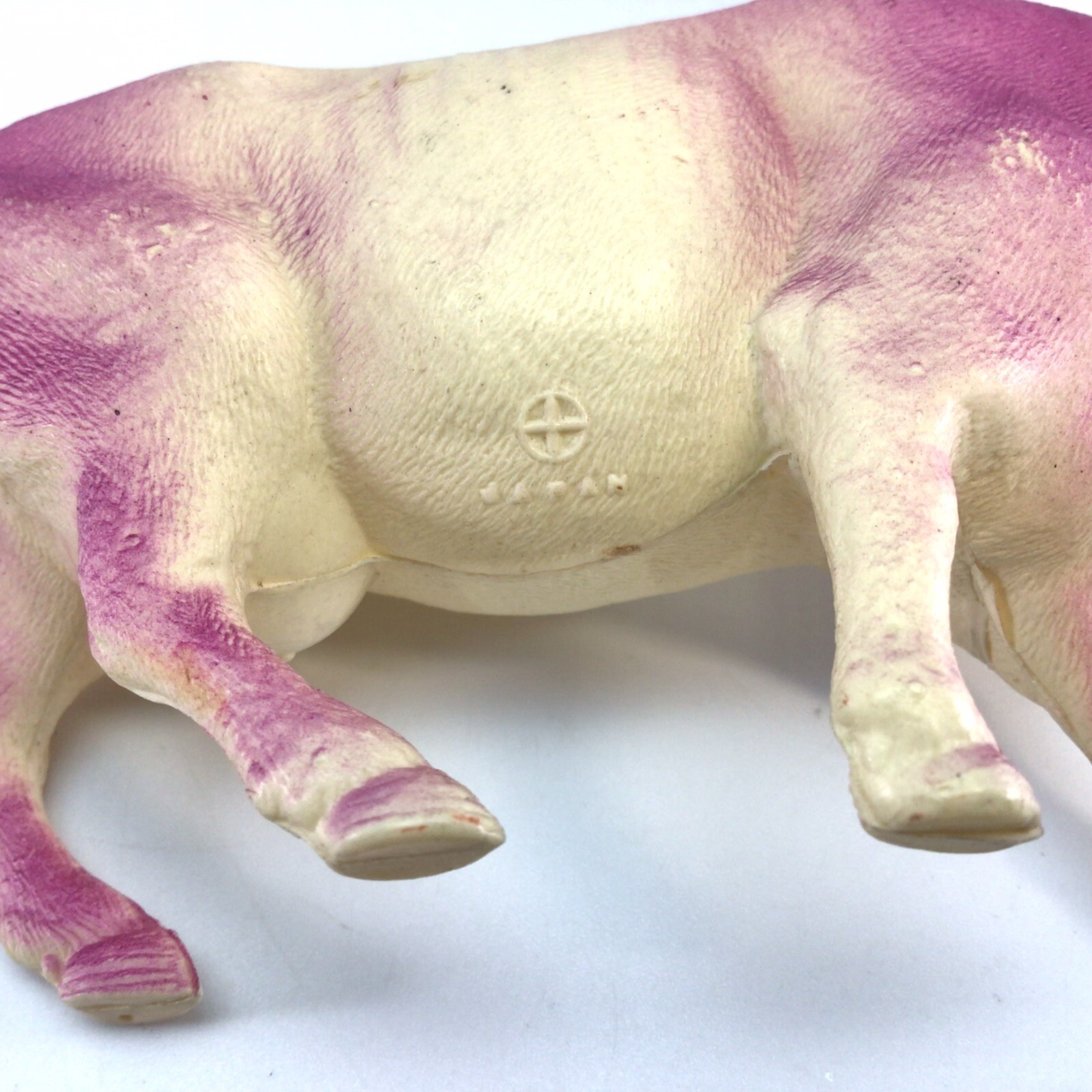 Vintage Celluloid Cow Toy Christmas Putz Farm Display Purple Japan