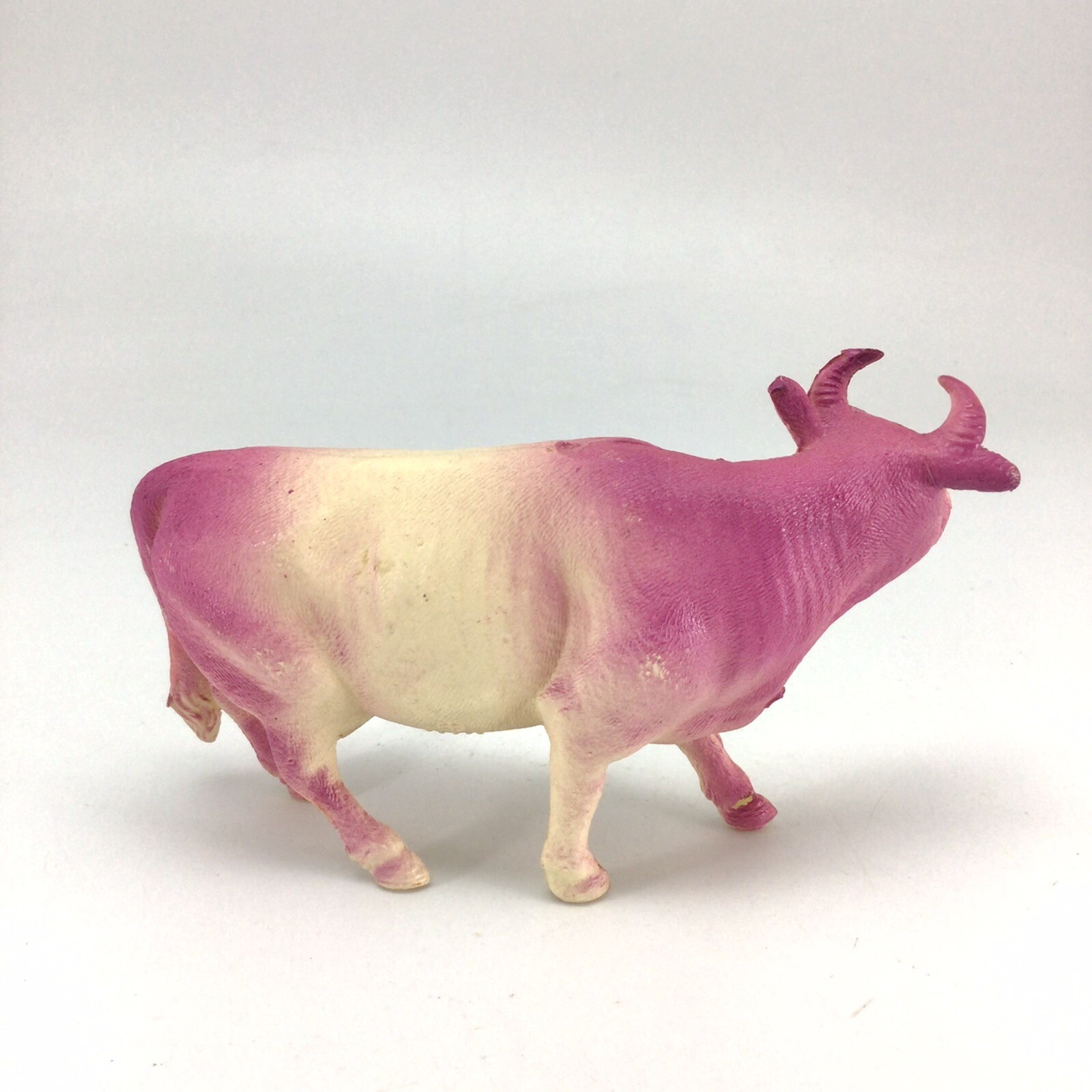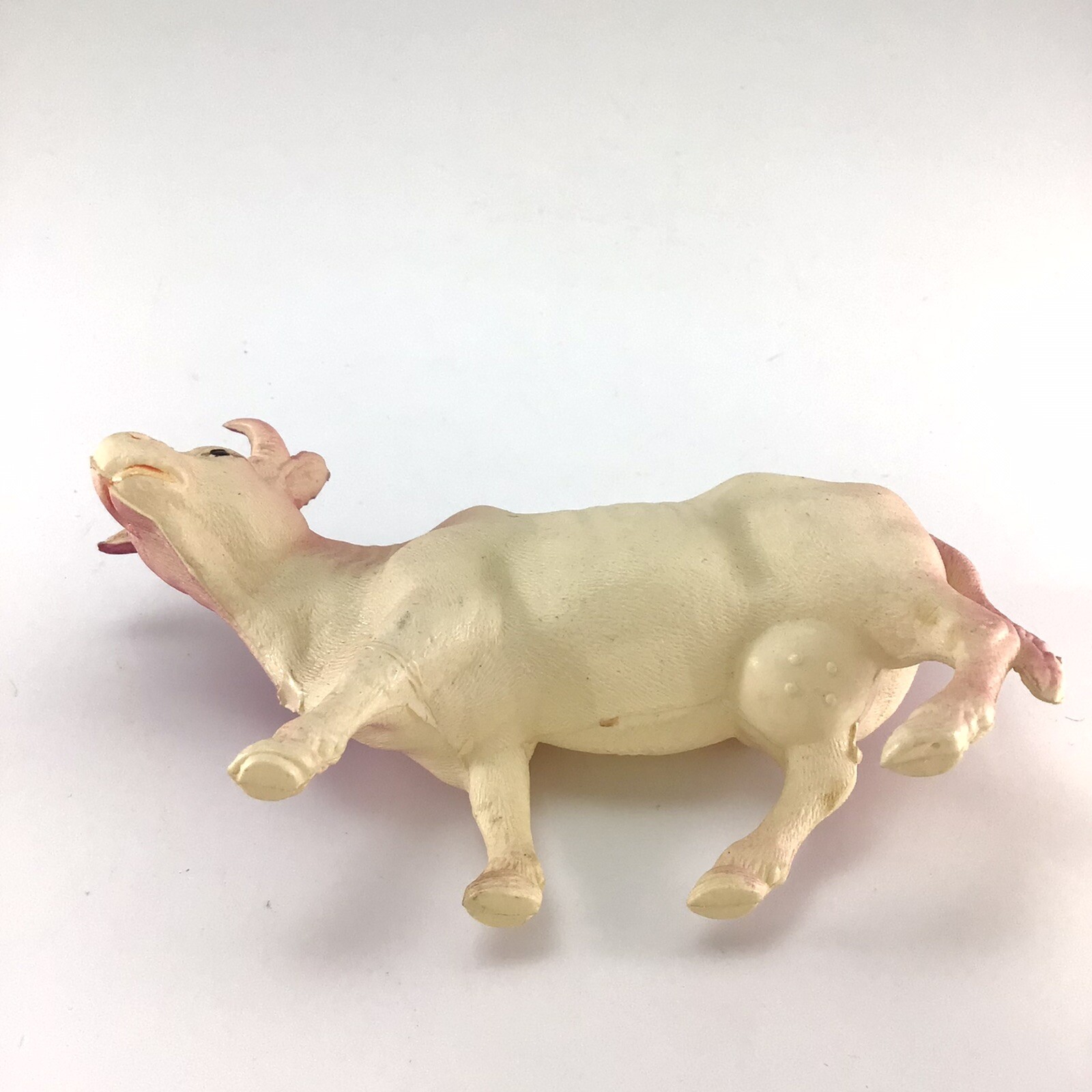 как выглядит Vintage Celluloid Cow Toy Christmas Putz Farm Display Purple Japan фото