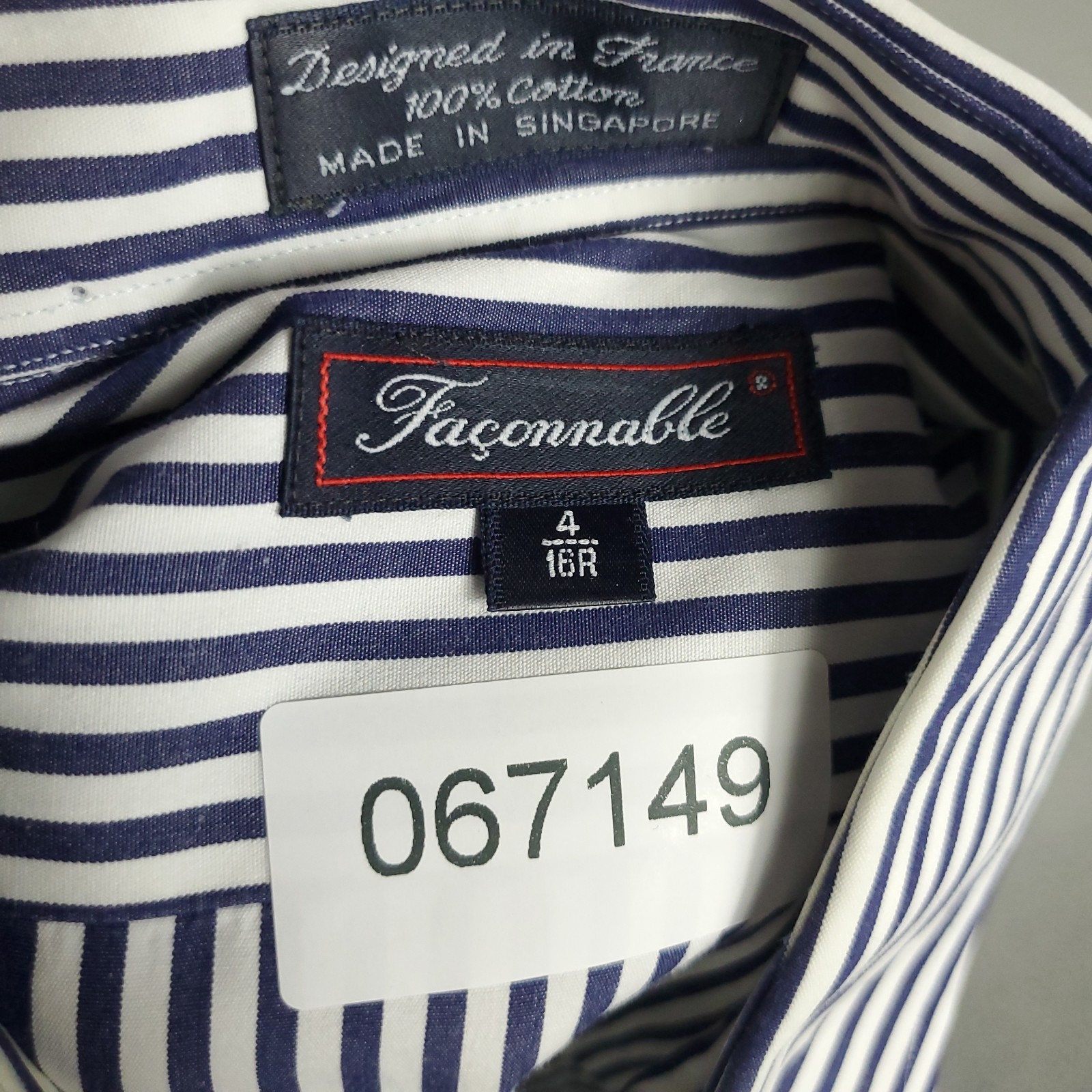 Faconnable Shirt Mens Size 16 Blue Striped Dress Button Up Long Sleeve