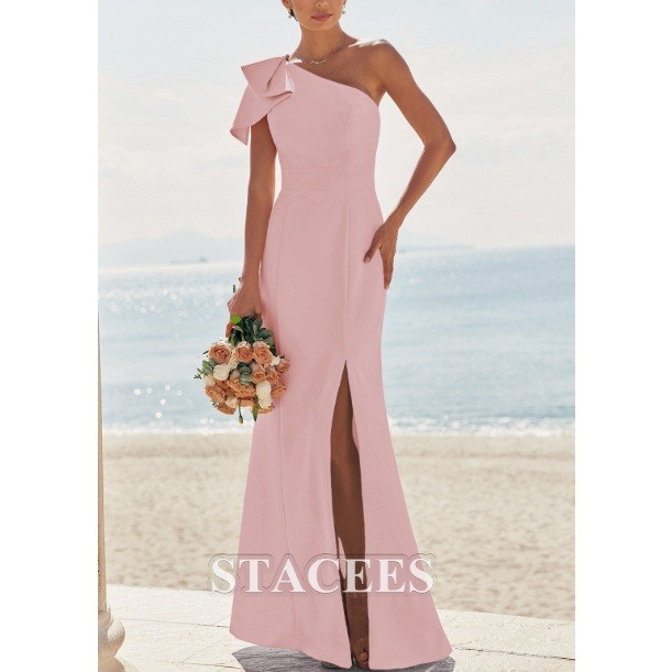 Stacees Women's Dusty Pink One-Shoulder Bowknot Split Bridesmaid Dress Size S