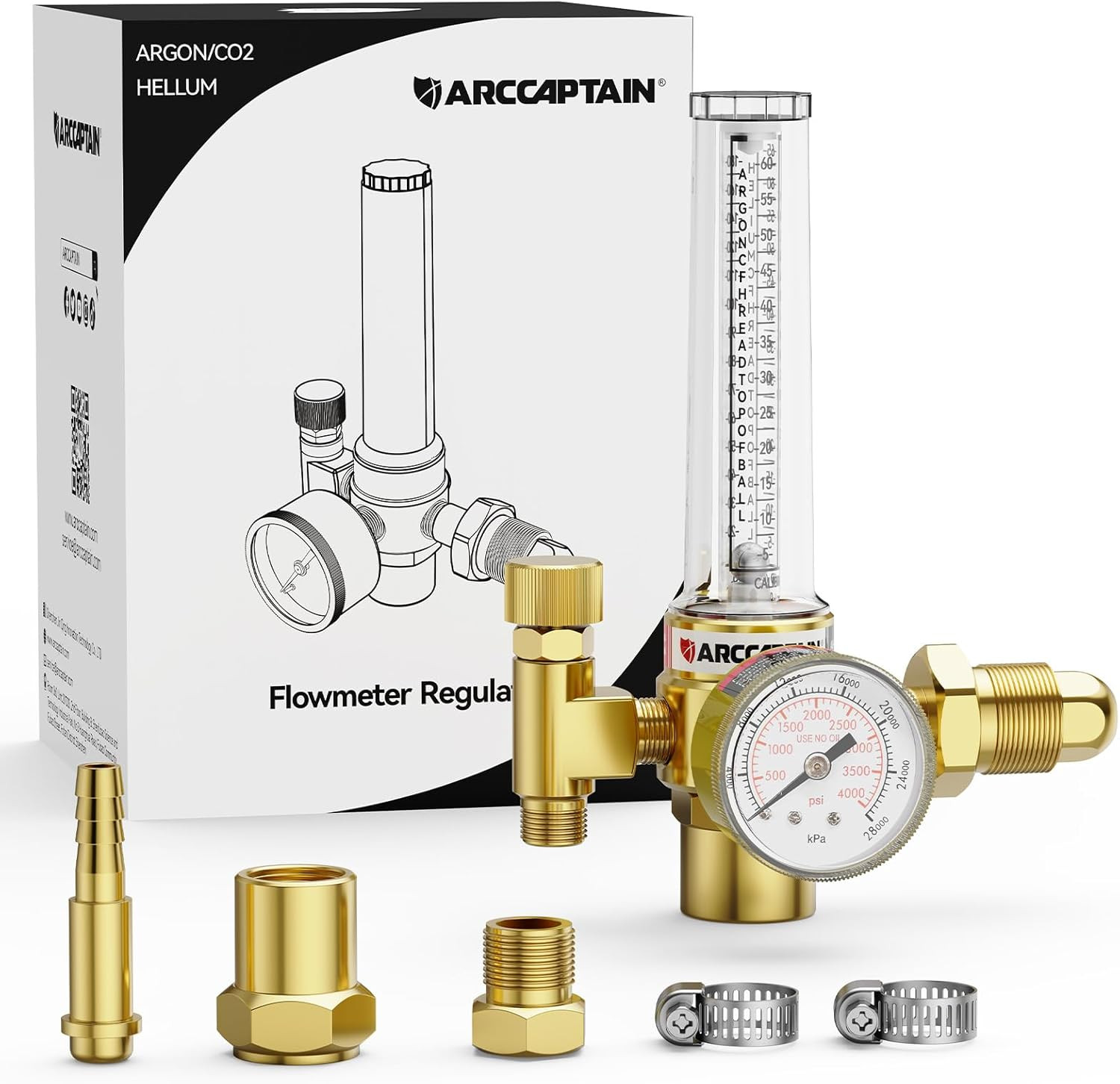 Included Components: 1 x Argon/CO2/Helium regulator, 1 x hose barb, 2 x hose clamps