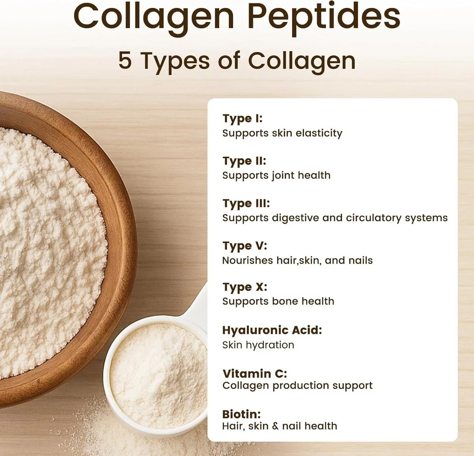 Ingredients: Multi Collagen Complex, Vitamin C, Hyaluronic Acid, Biotin