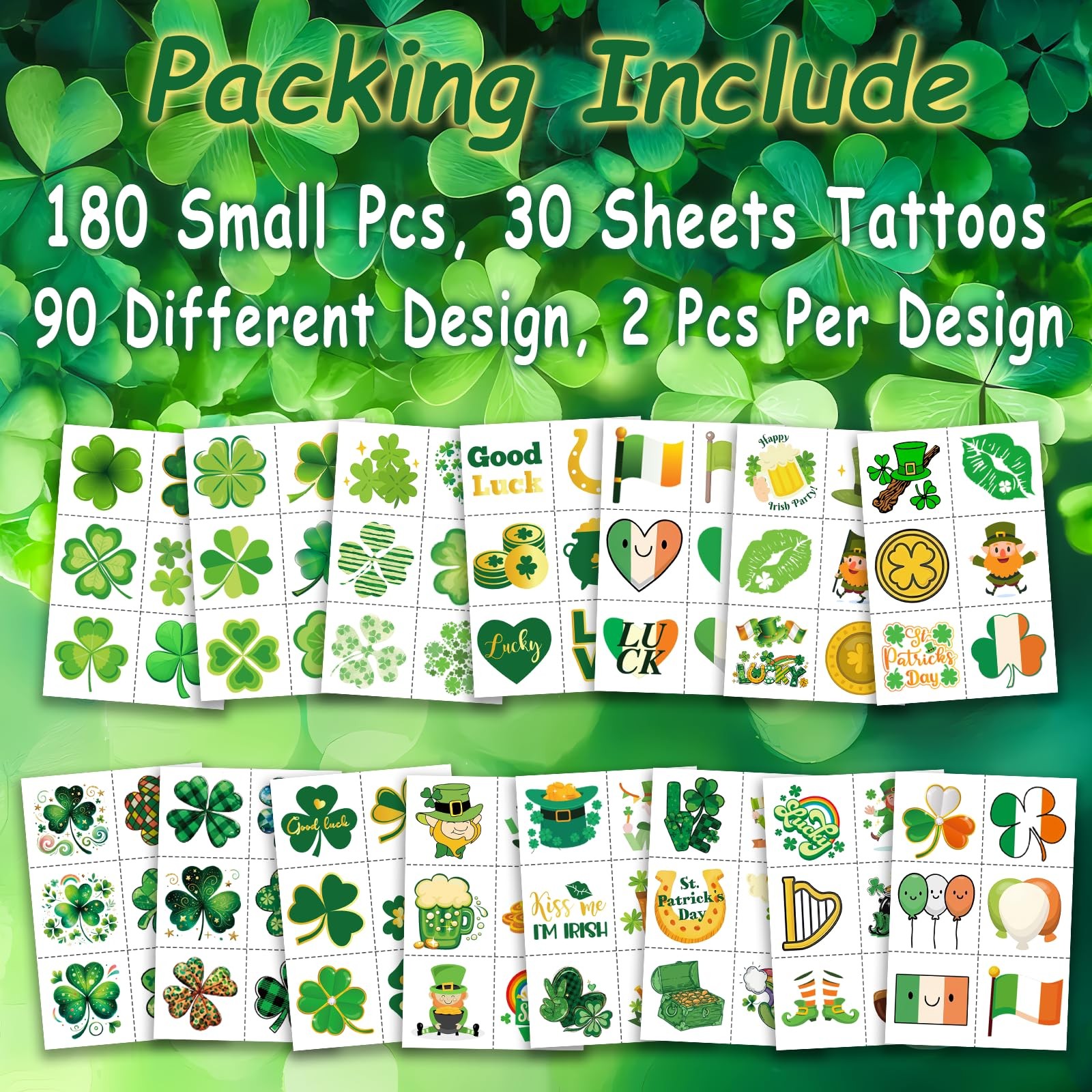 180Pcs St-Patricks Day Temporary Tattoos - Shamrock St Patrick's