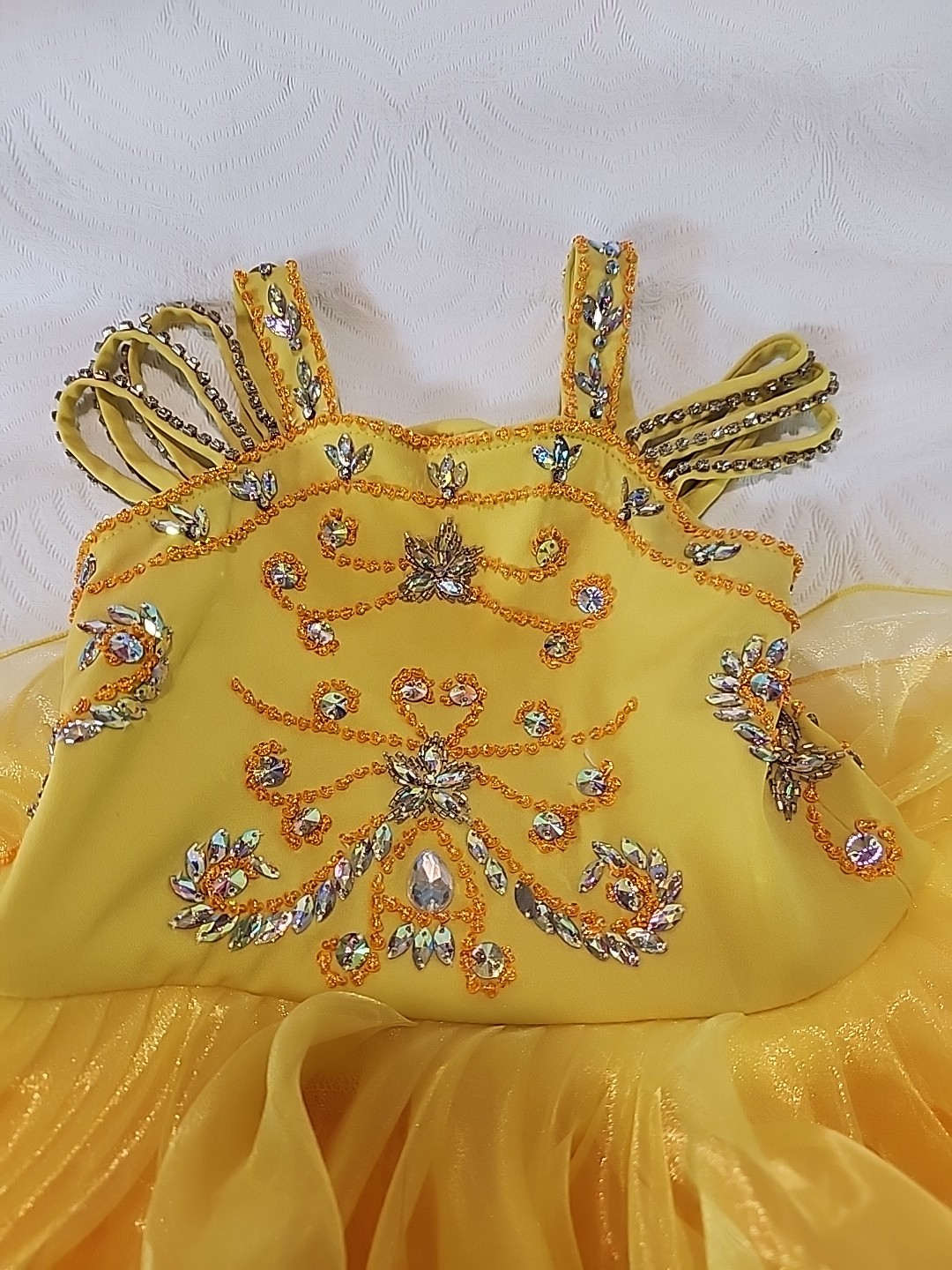 Yellow Sequined Ruffled Pagent Dress Dance 12m With Bow